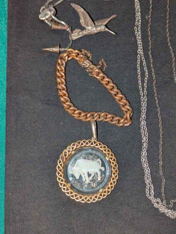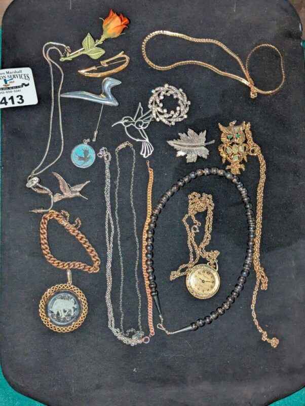 Costume necklaces, brooches, etc