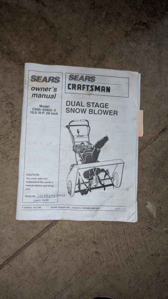 Craftsman Special Edition Dual Stage 10.5/29 Snow blower