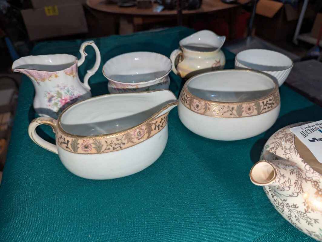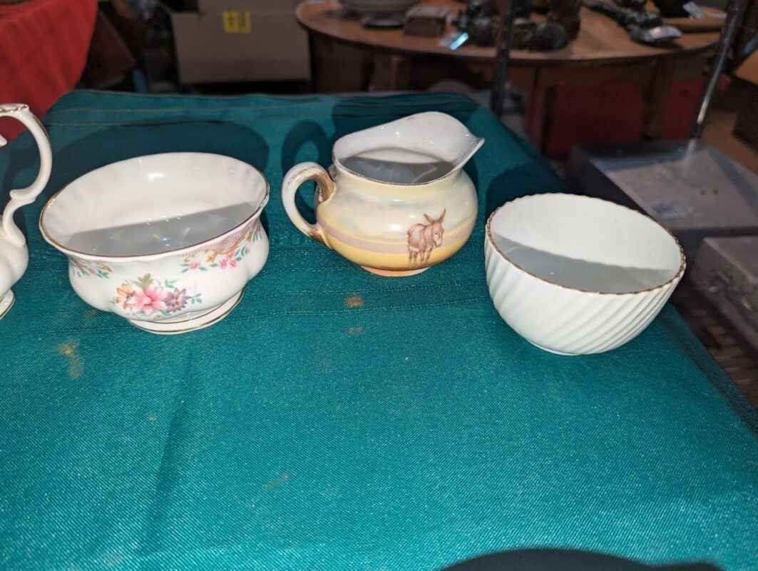 Cream & Sugar servers, candle holder