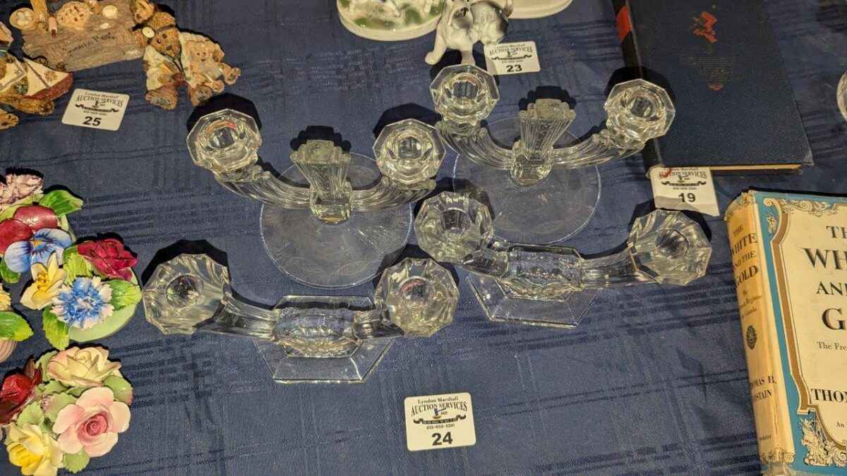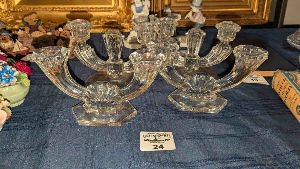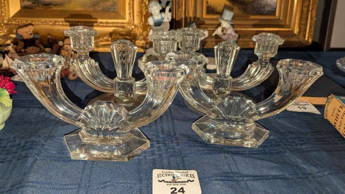 Val St. Lambert Crystal Double Armed Candle stick holders