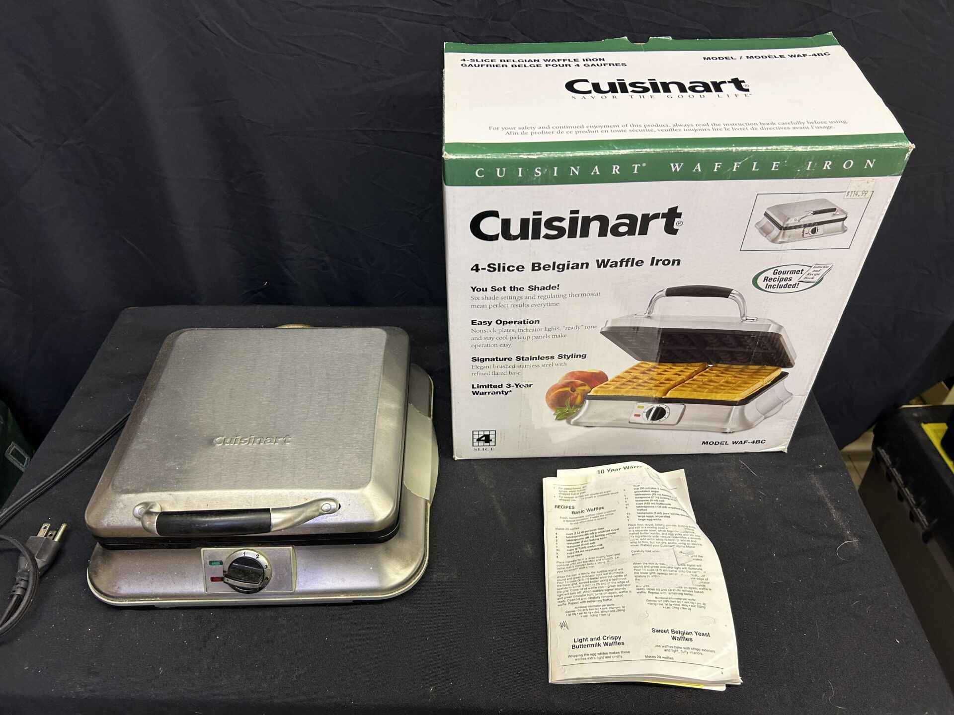 Cuisinart 4 slice belgian waffle iron. Used but works well.