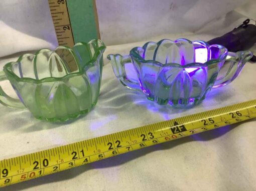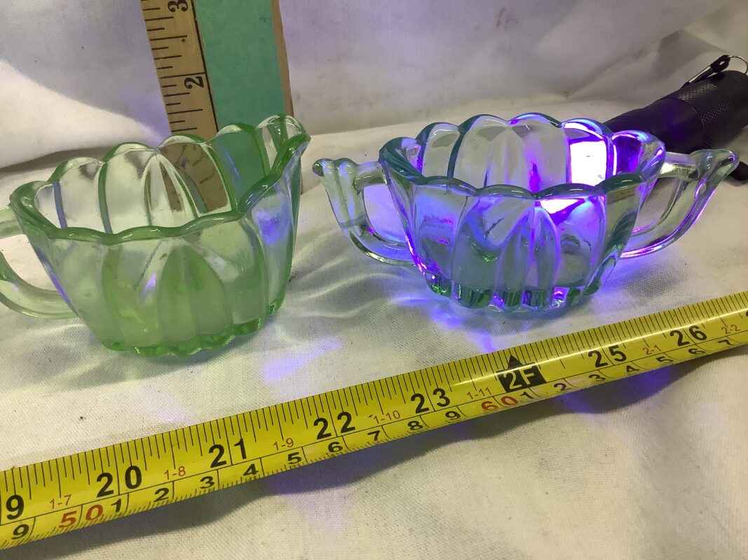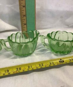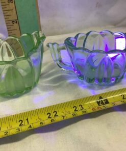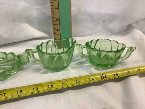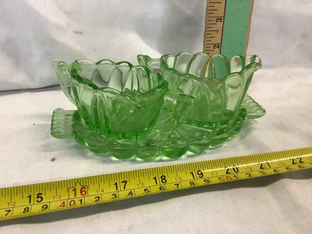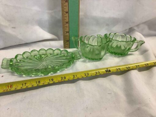 Depression Era Green “Uranium” Glass Cream, Sugar and Tray
