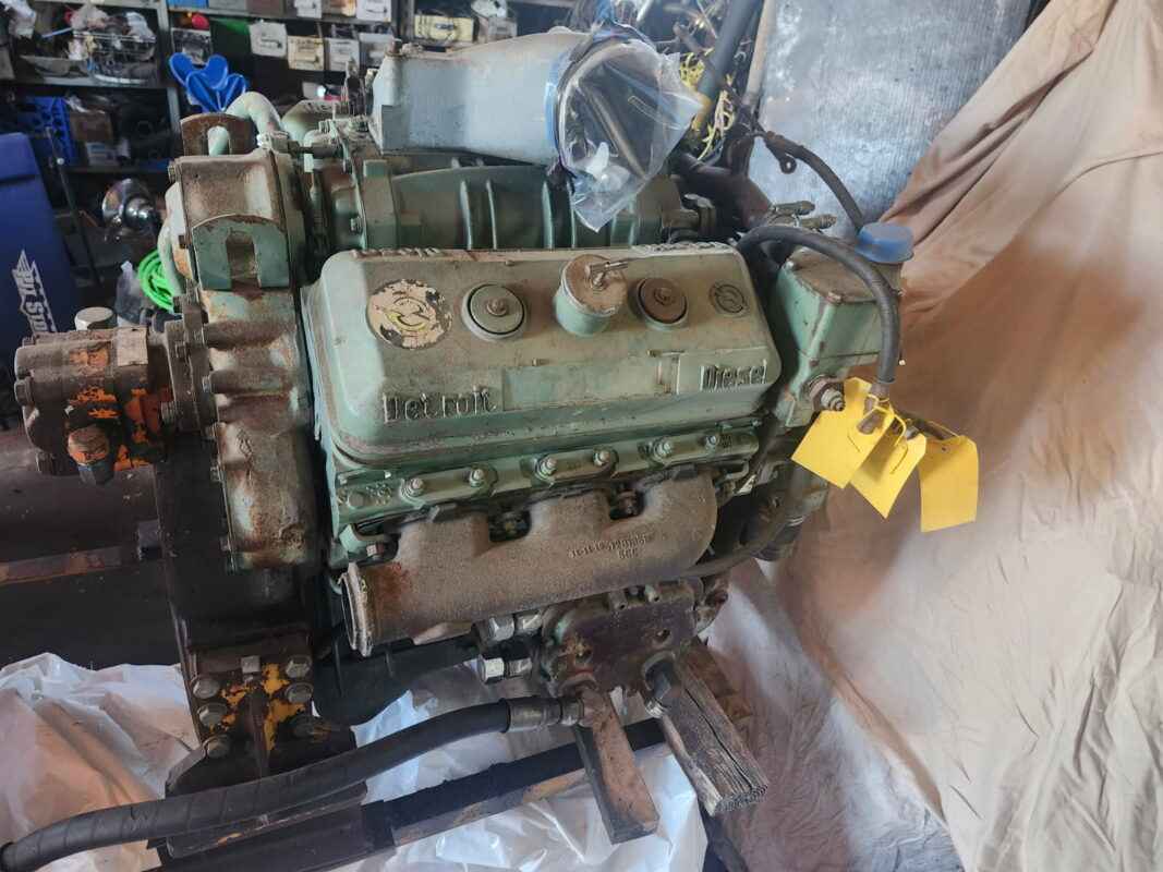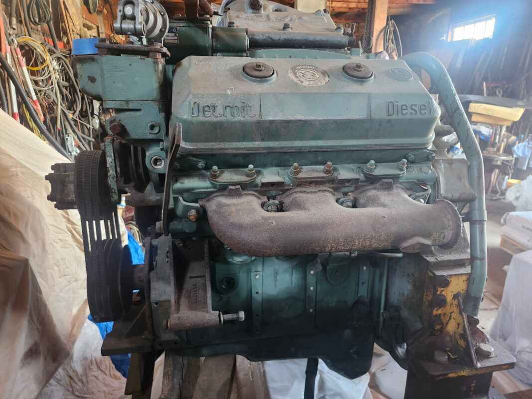 Detroit 6V71 Diesel Engine, hydraulic pump, stand not included, stored inside. runs good