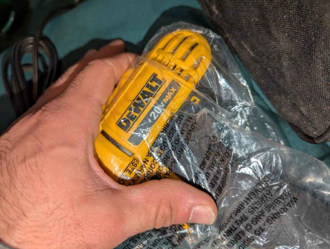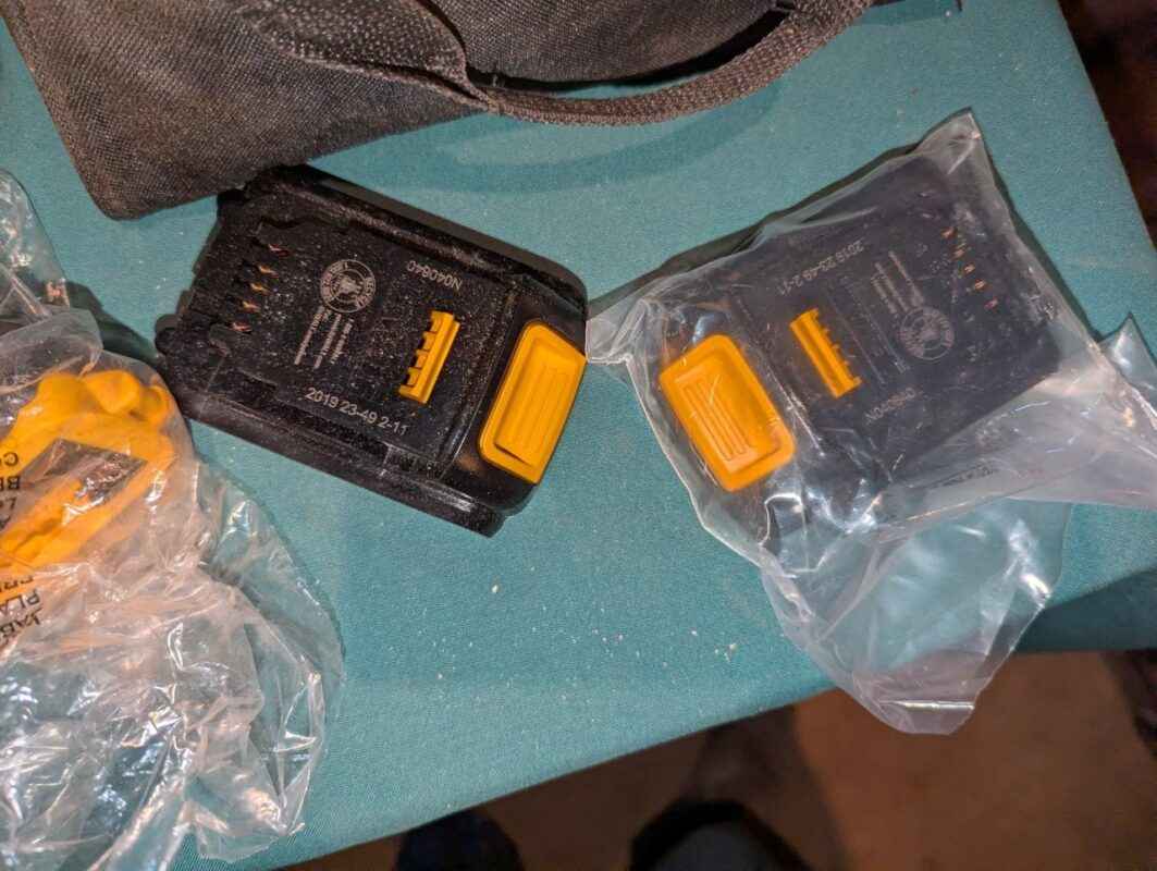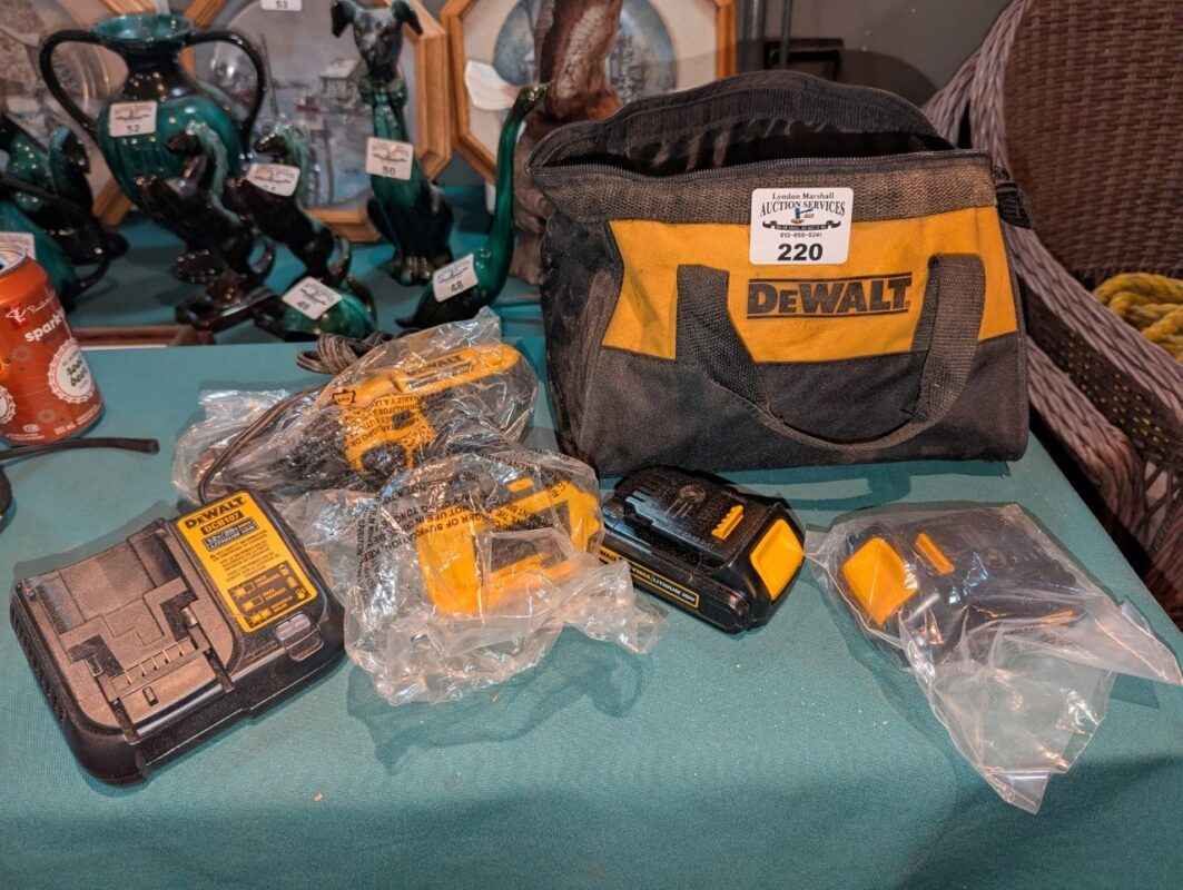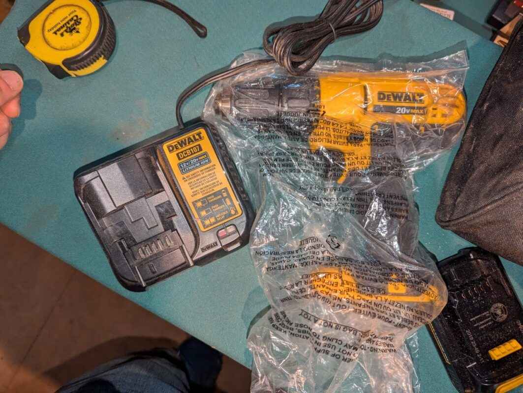 DeWalt 20 V cordless drill, charger, batteries