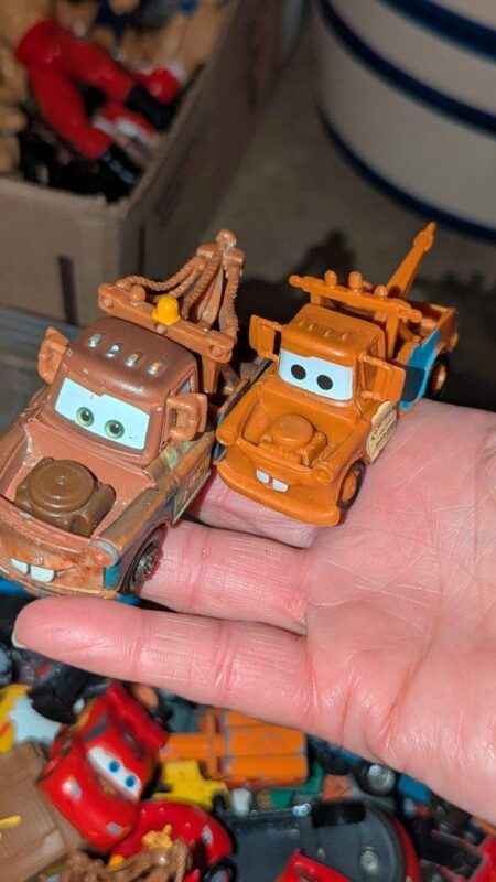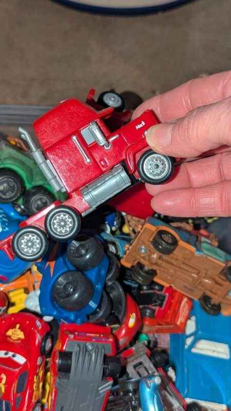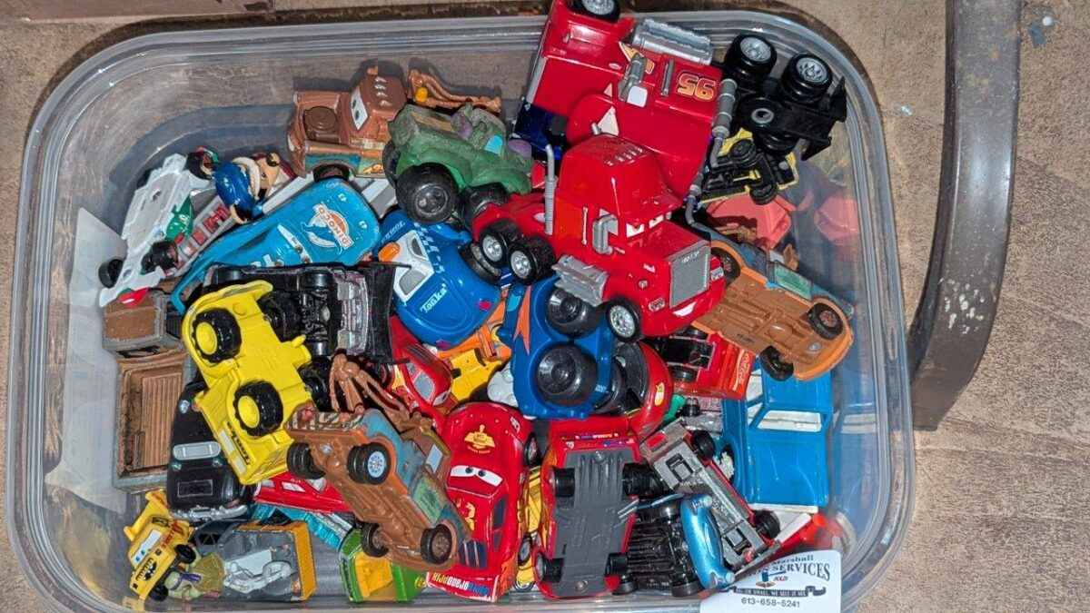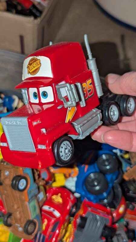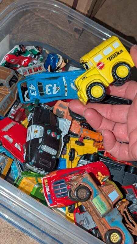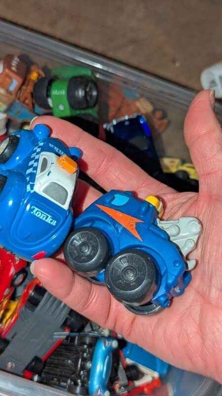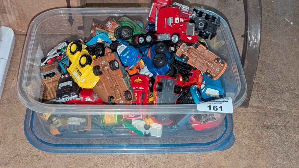 Disney Cars, Tonka & assorted model toy cars in plastic storage box