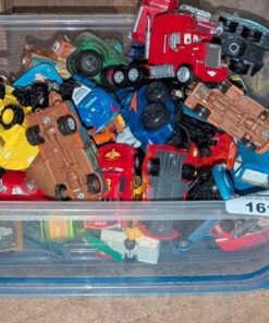Disney Cars, Tonka & assorted model toy cars in plastic storage box