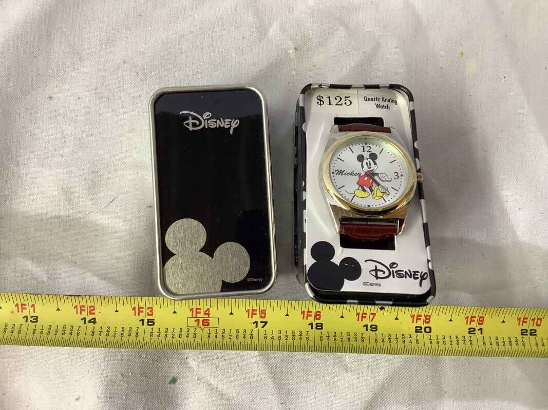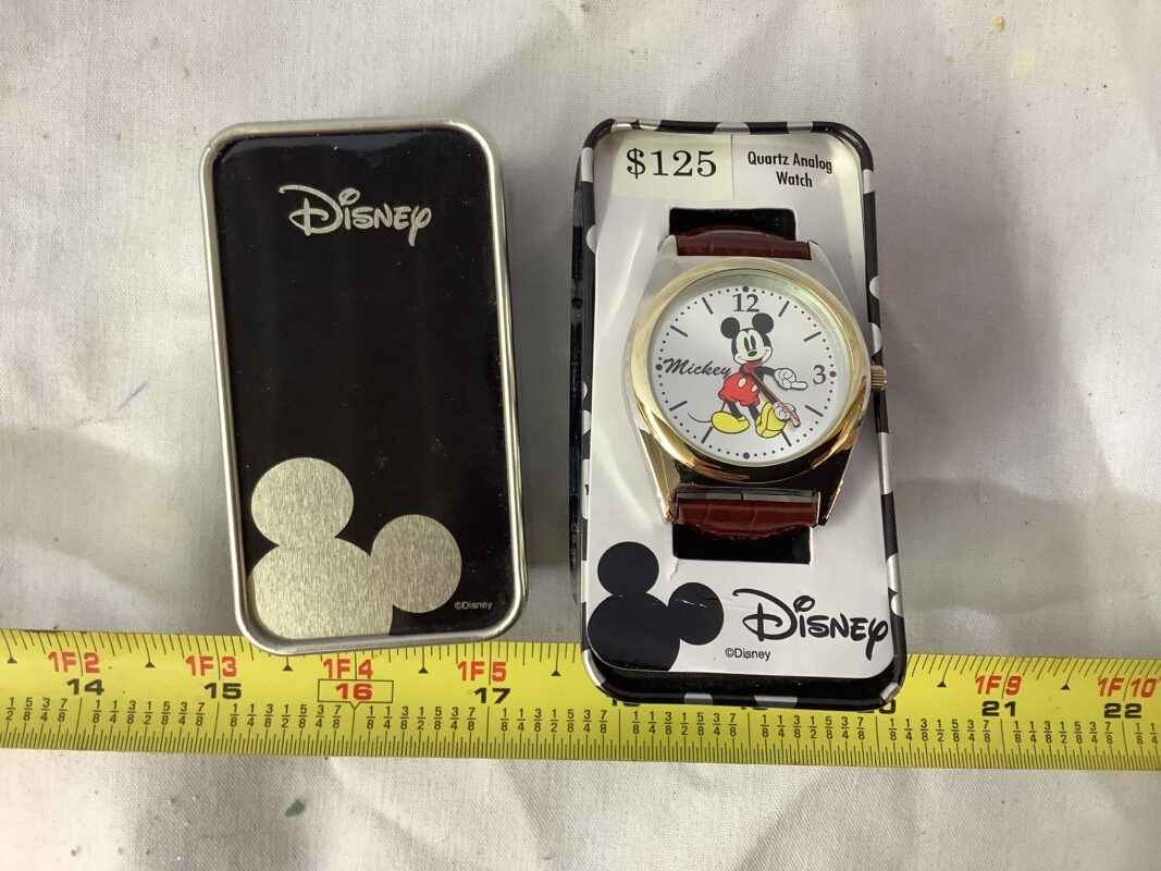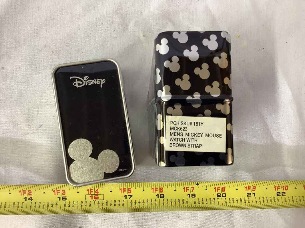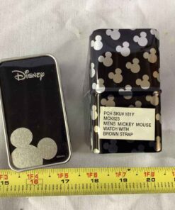 Disney Mickey Mouse Watch with Brown Strap in Metal Case