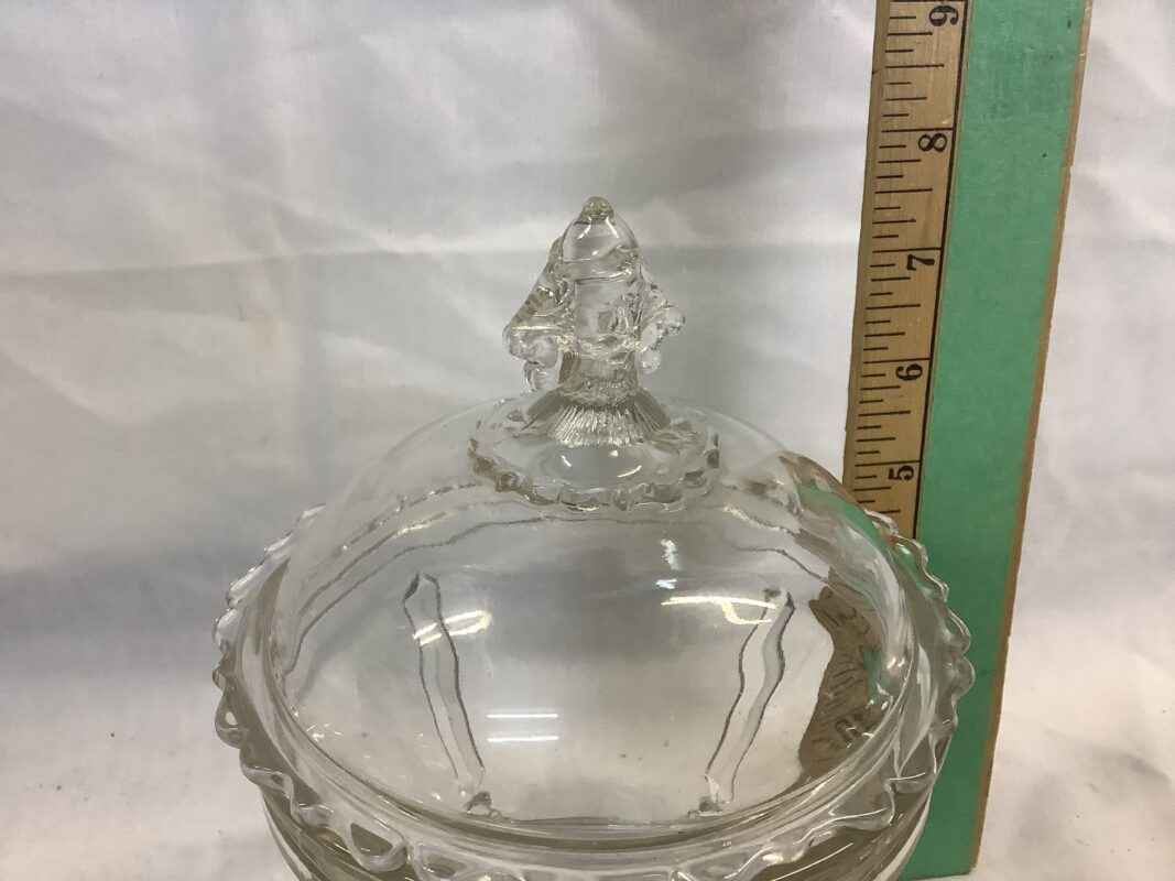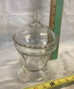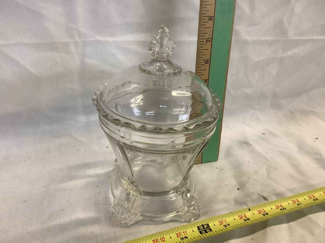 Early American Patterned Glass Sugar Bowl with 2 Sided Bearded Man Finial