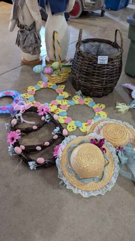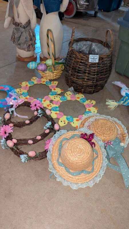 Easter Wreaths, baskets and decorative bonnets