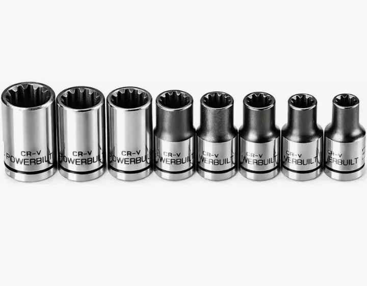Eight piece universal spline socket set