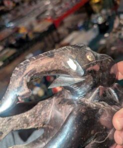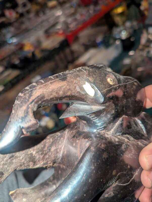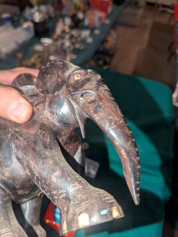 There is a visible crack and the tusks are missing
