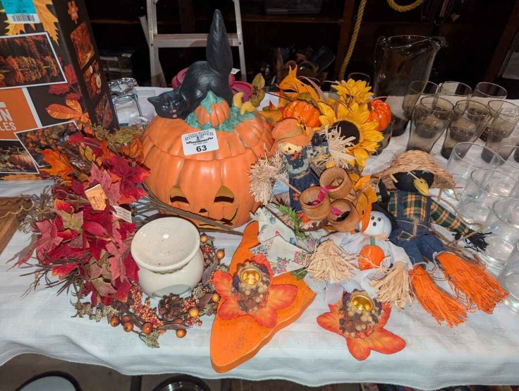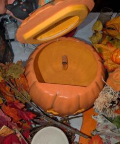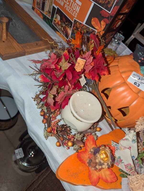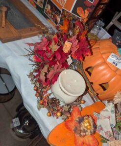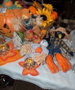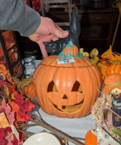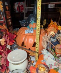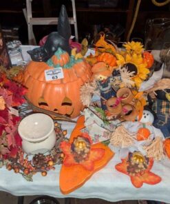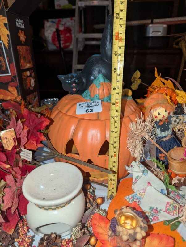 Fall Decorations, artificial jack-o-lantern, candle stick holders