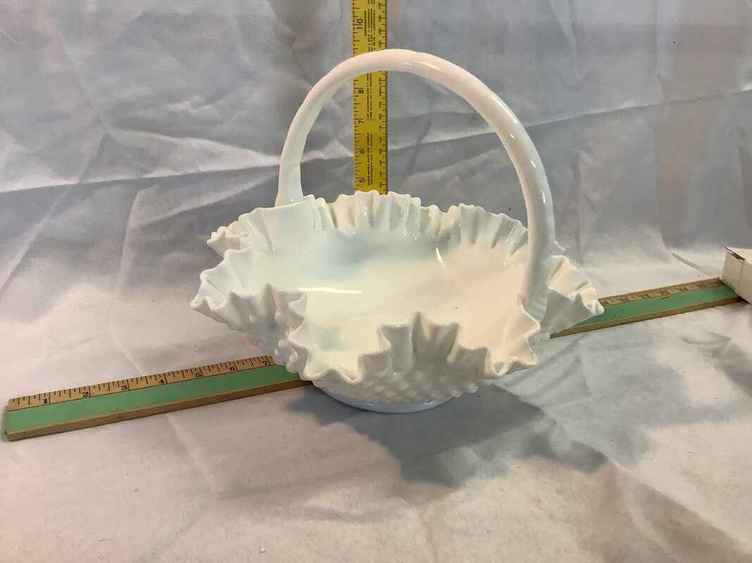 “Fenton” Hobnail Milk Glass Basket