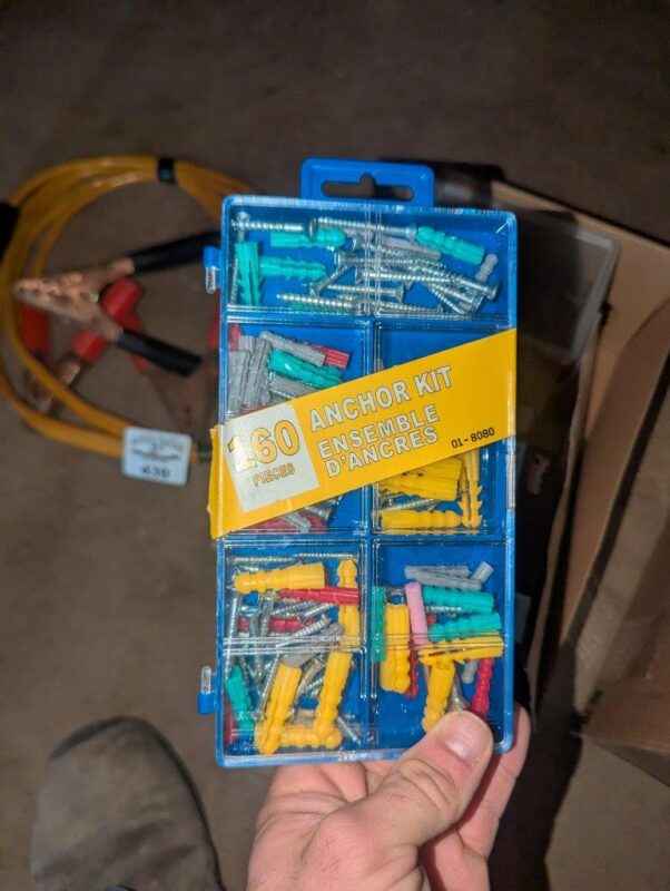 File, anchor kit, markers, screws, etc