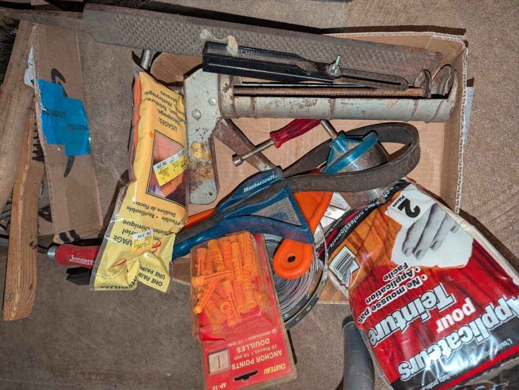 Files, wall anchors, Caulking applicator, etc