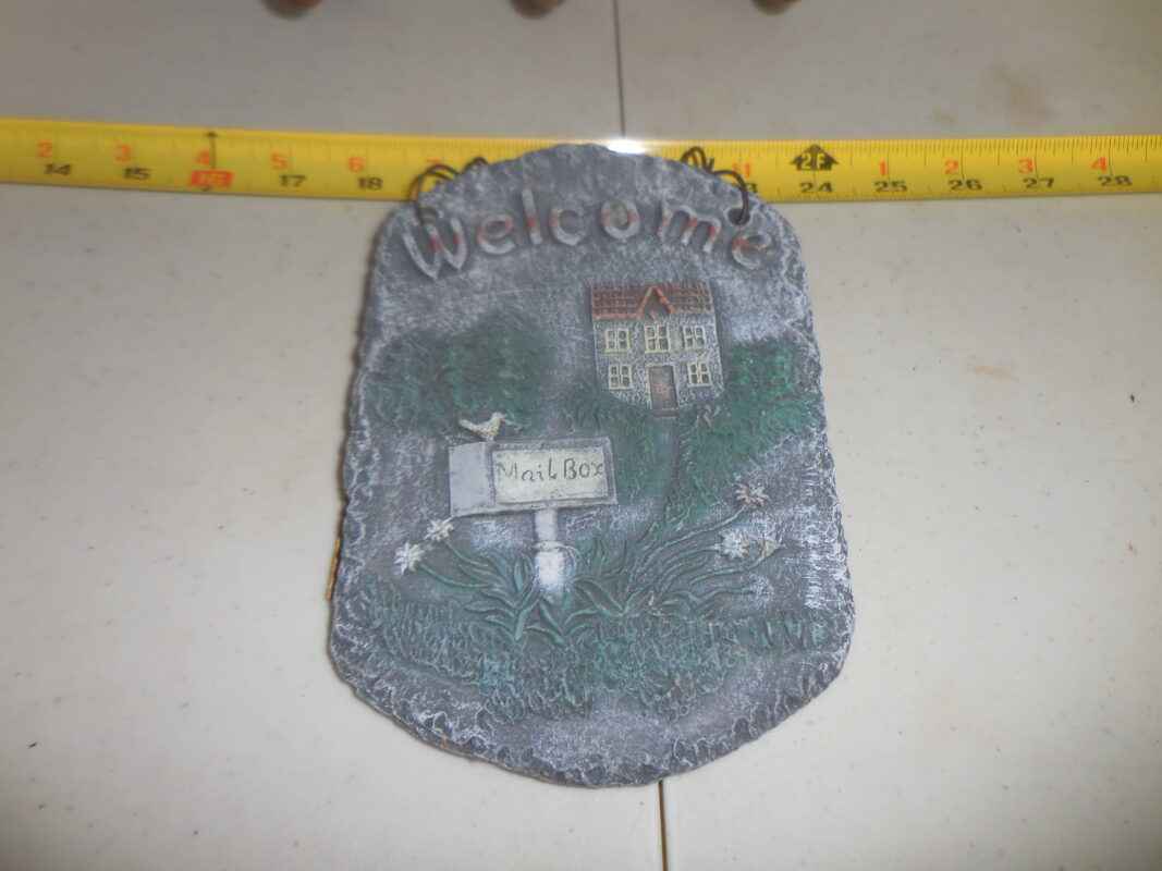 Folding hat rack & stone wall hanging “Welcome” sign