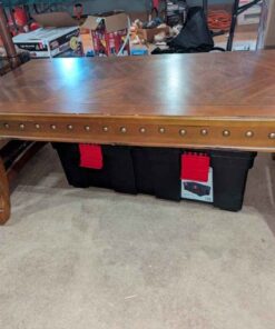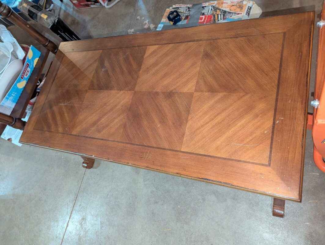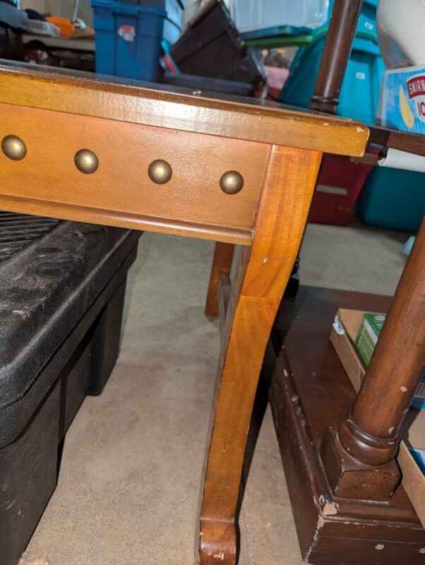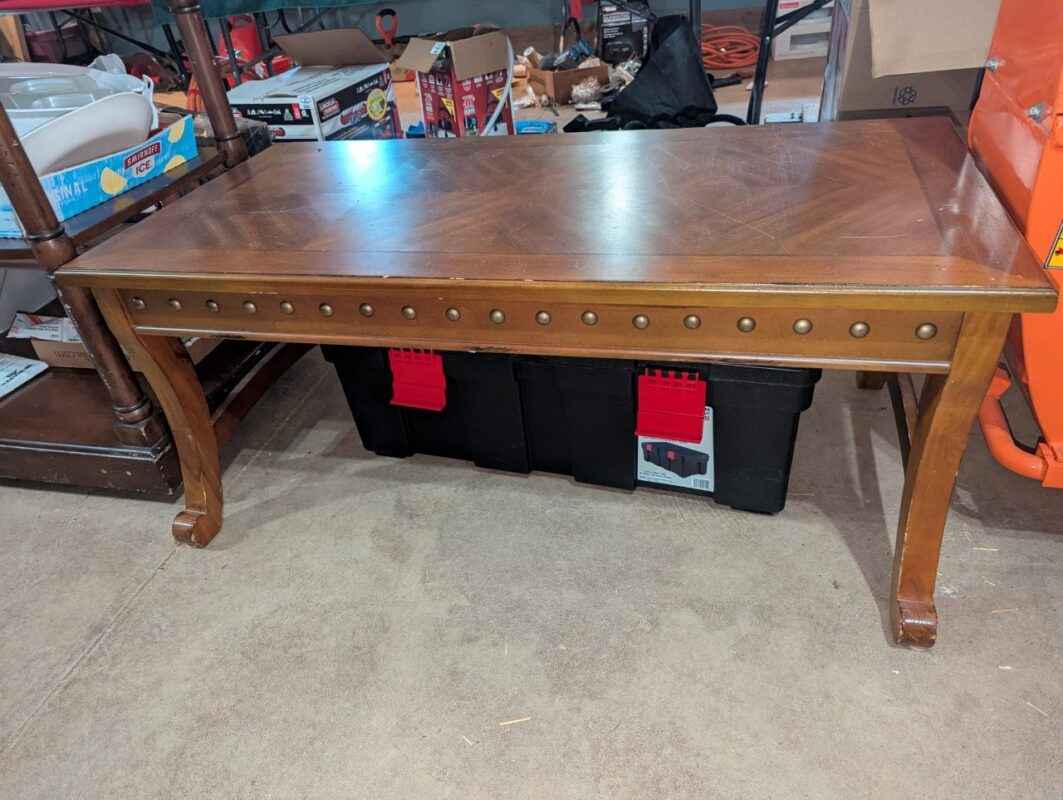 Wooden coffee table with studded skirting