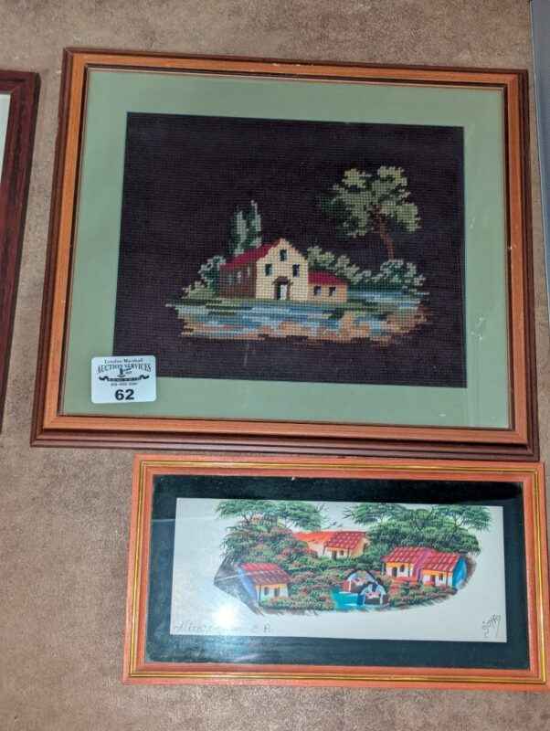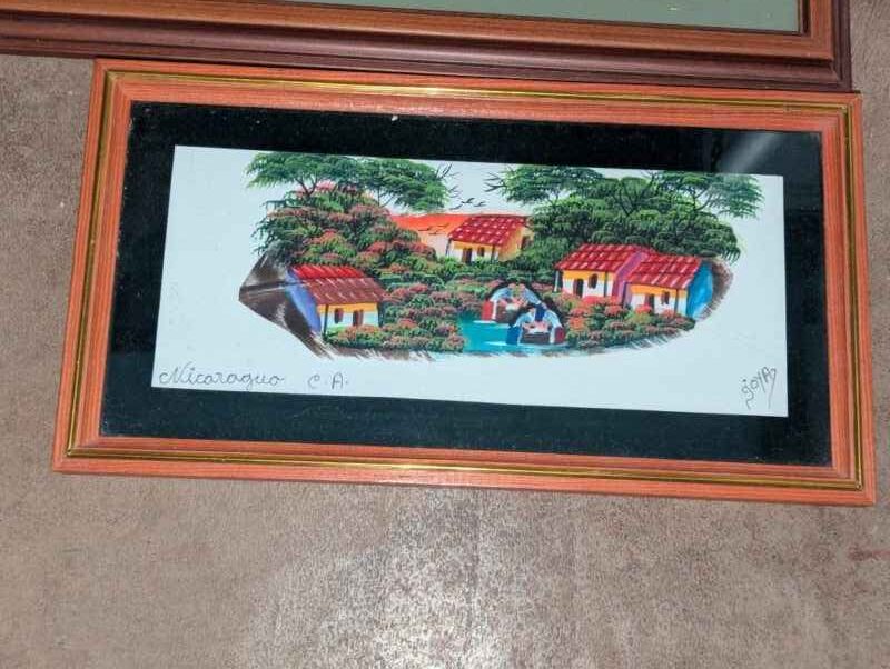 Framed Needlepoint & Nicaraguo art signed by artist “Goya”