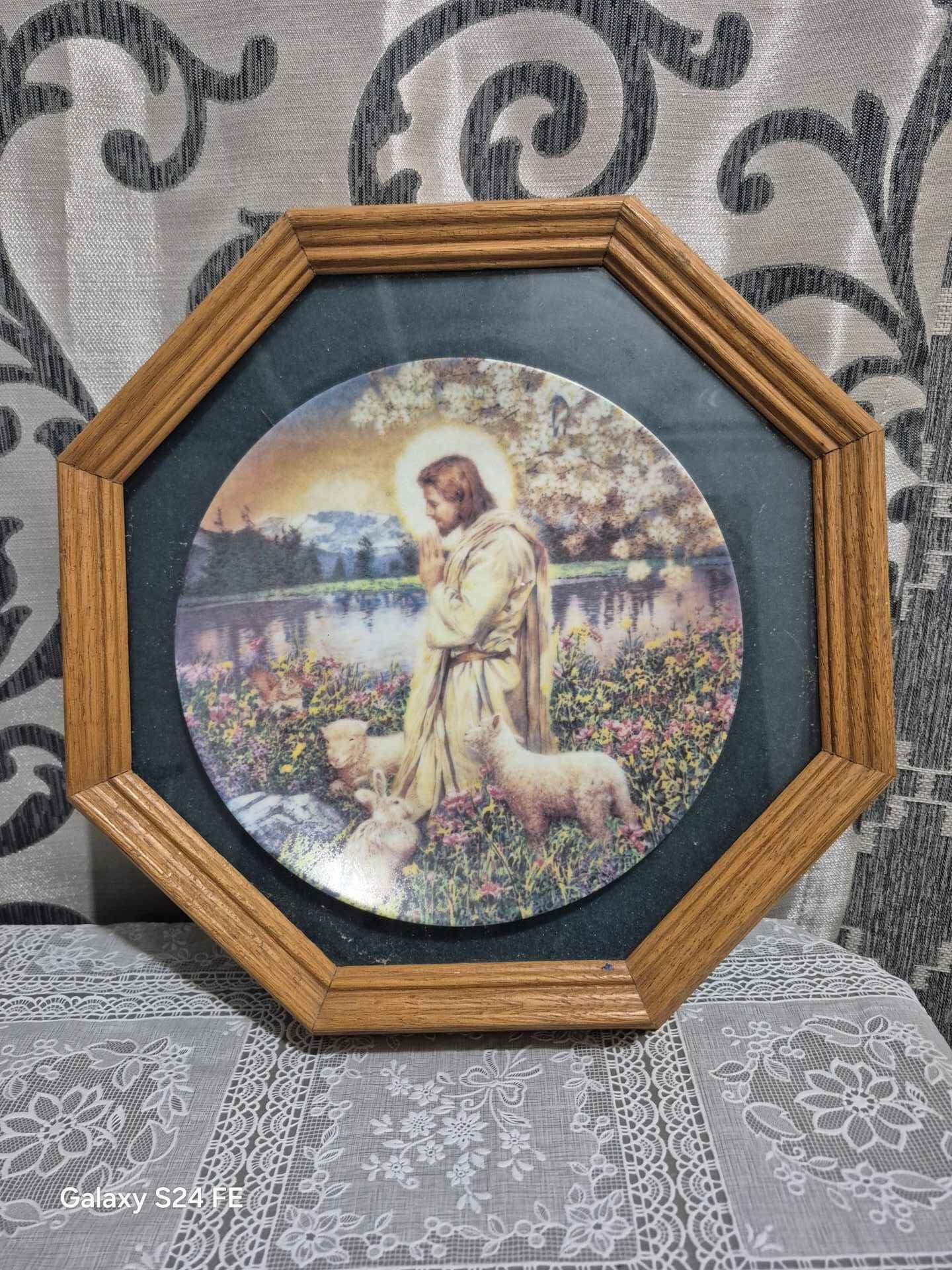 framed plate with Jesus sitting with sheep