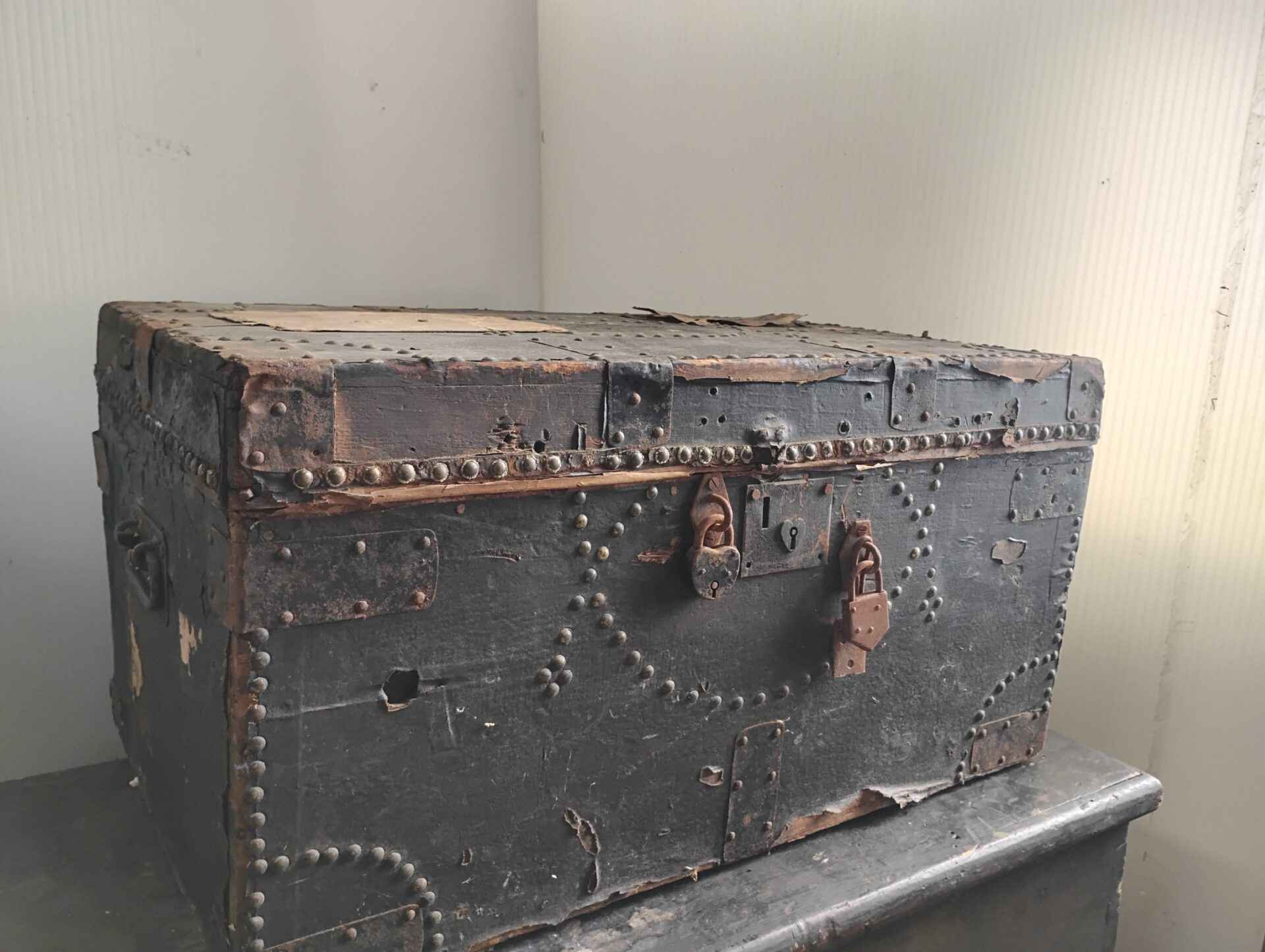 Vintage war trunk with contents