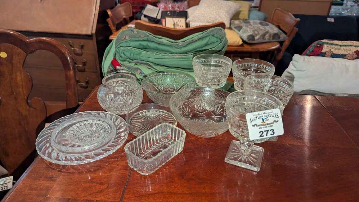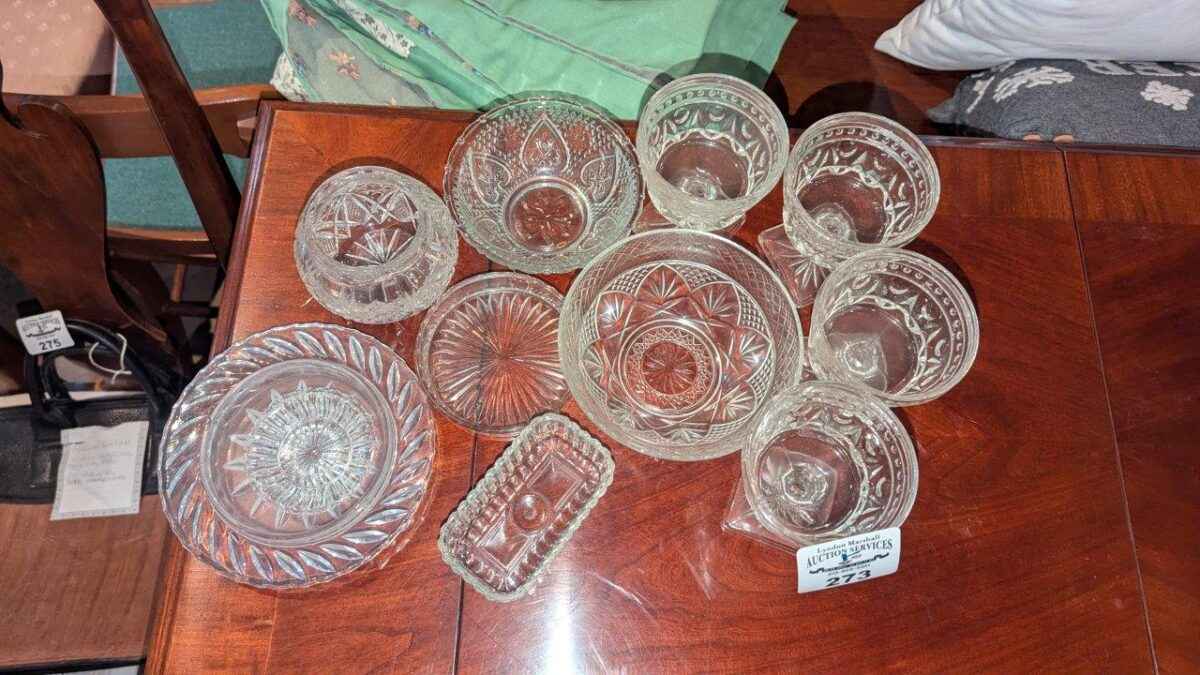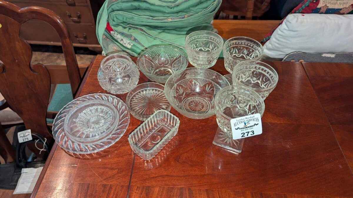 Glass bowls, butter dishes, etc