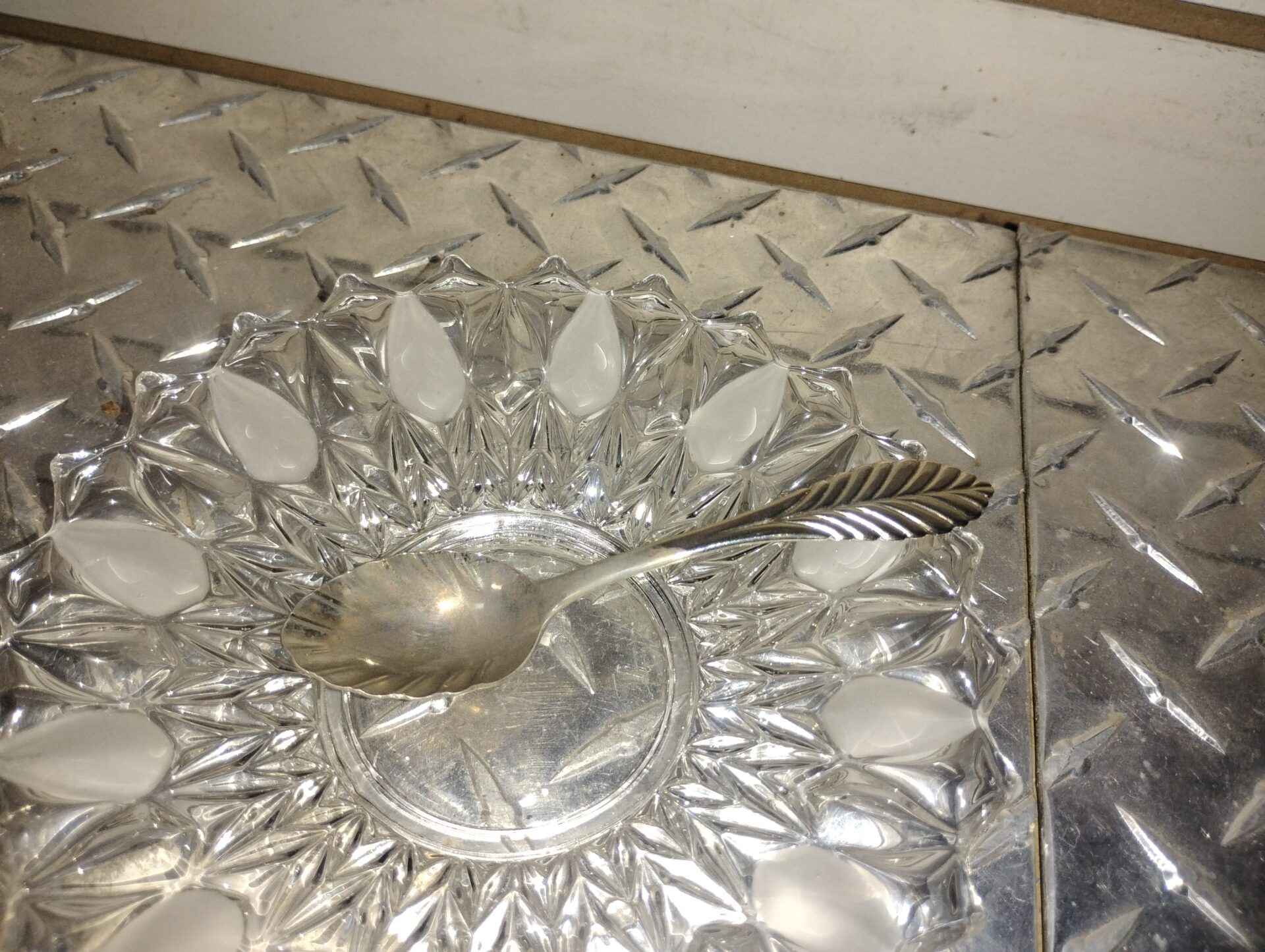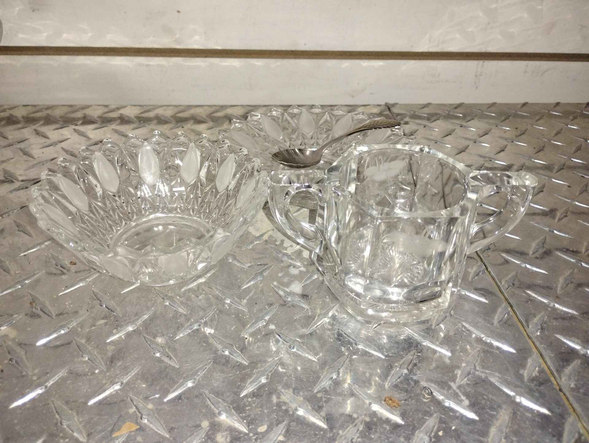 Glass joblot with silver spoon