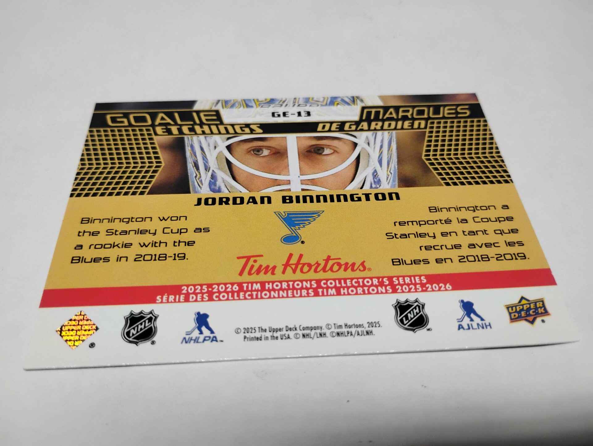 Goalie Etchings Jordan Binnington