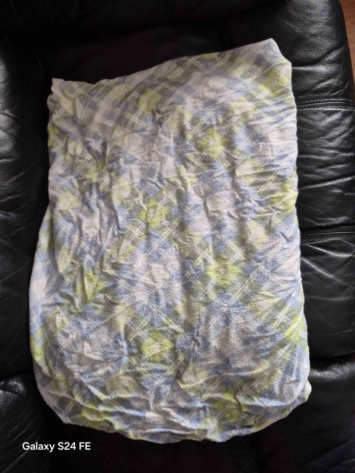 Green and blue flannel single fitted bedsheet