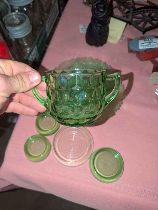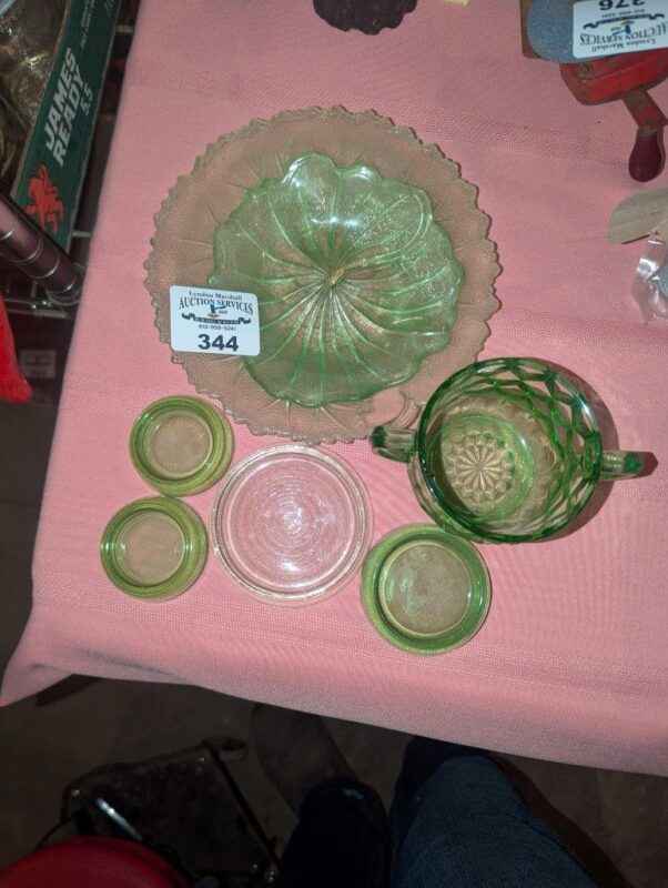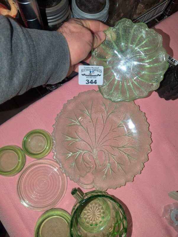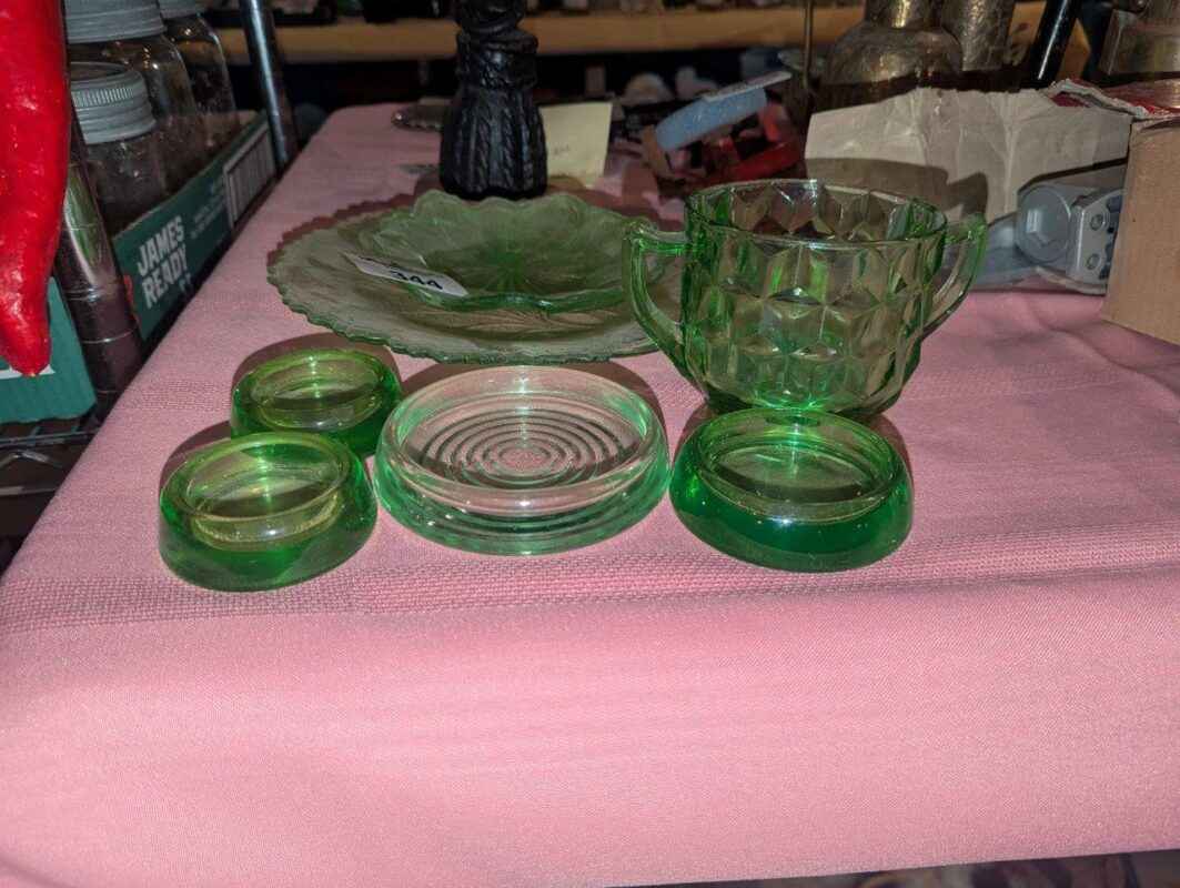 Green Depression and assorted glassware