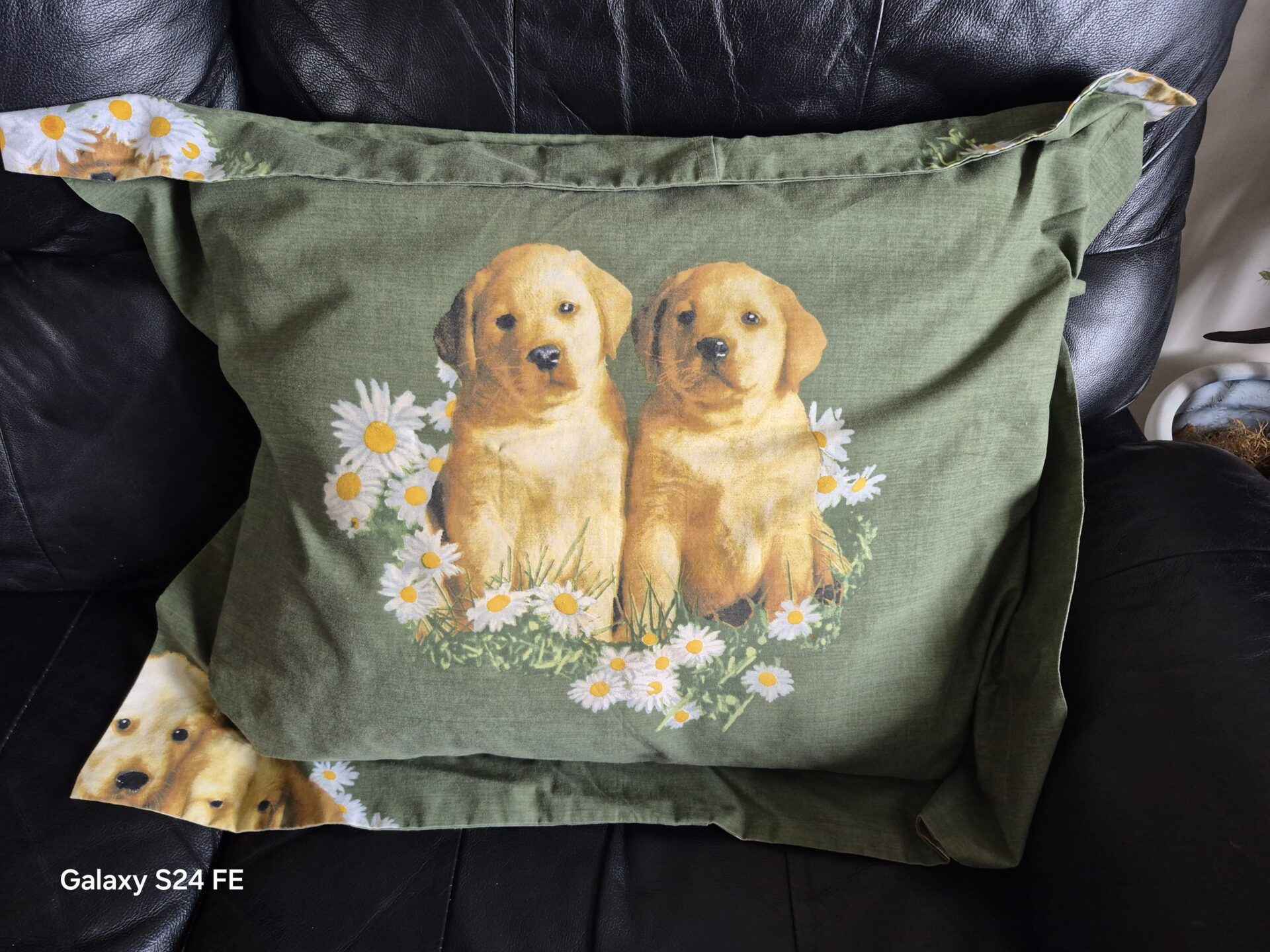 Green pillow with dogs on