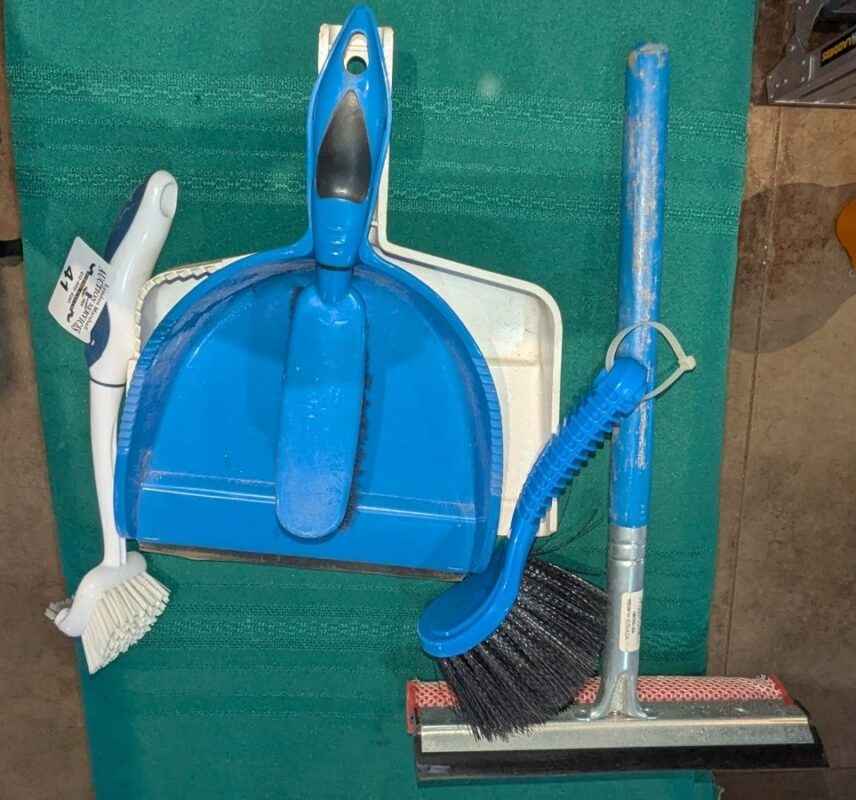 Hand brooms, squeegee, dust pans