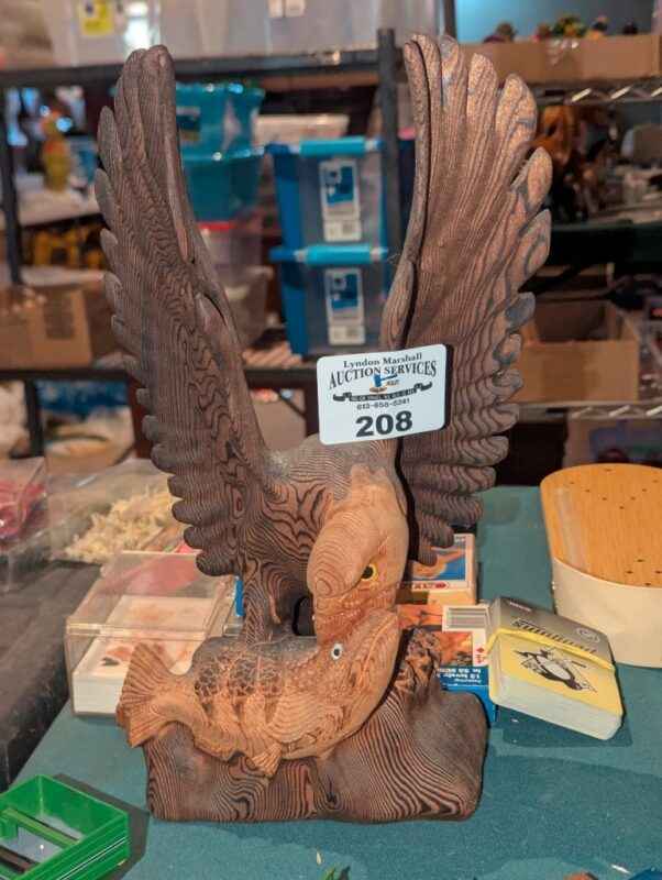 Hand Carved Eagle catching fish