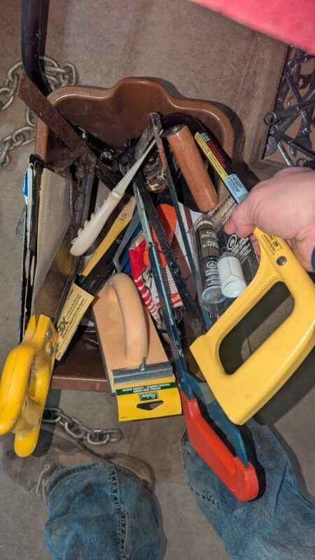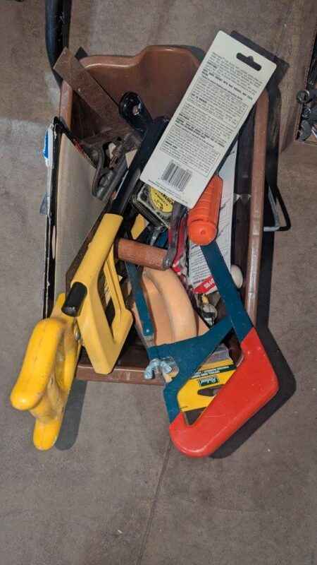 Hand saws, screwdrivers, measure tap, lock de-icer, etc