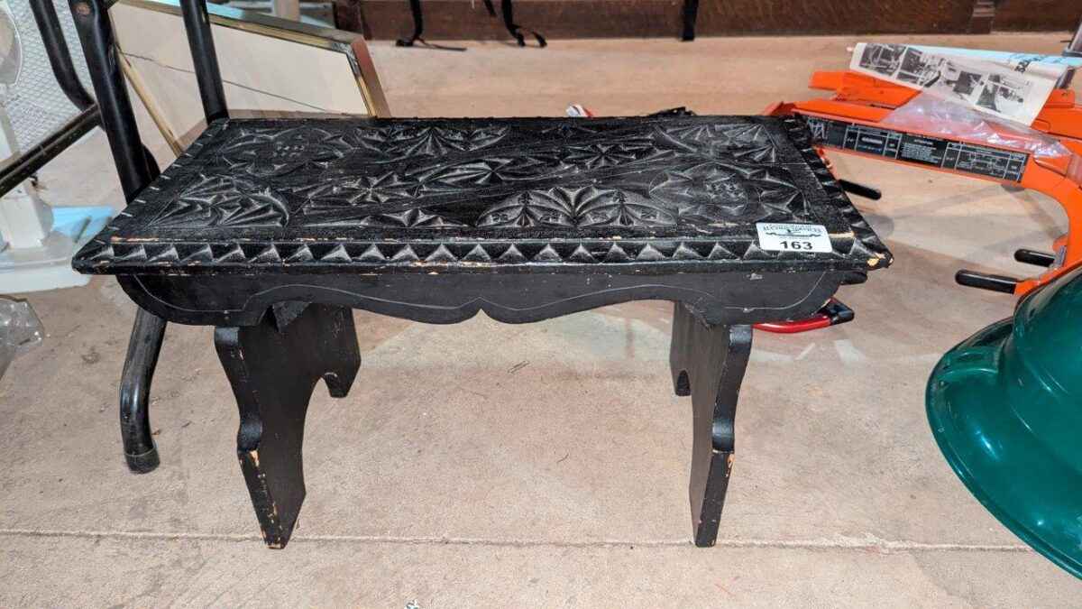 Heavily carved wooden side stand/table
