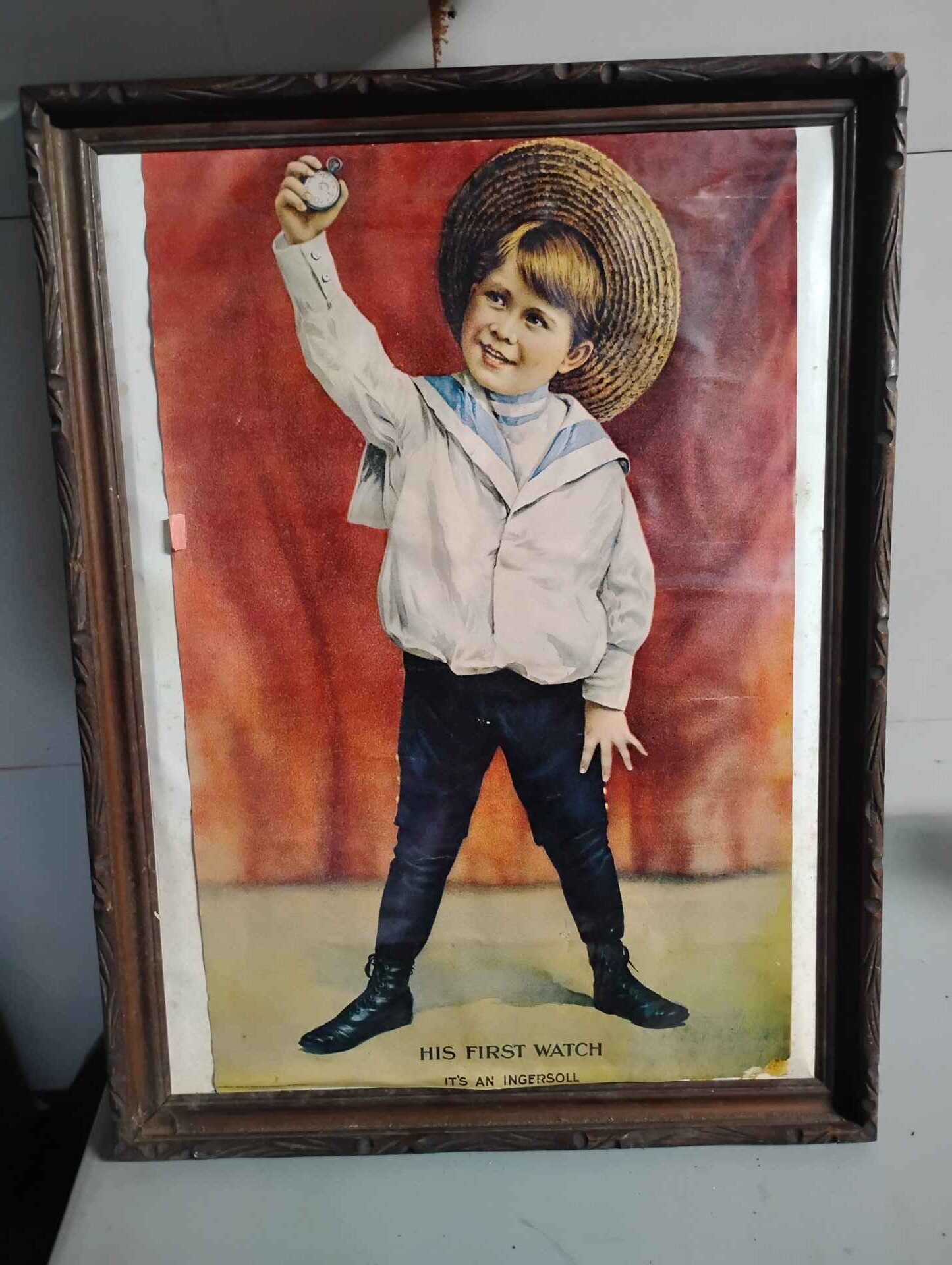 His first watch is an ingersoll Antique framed