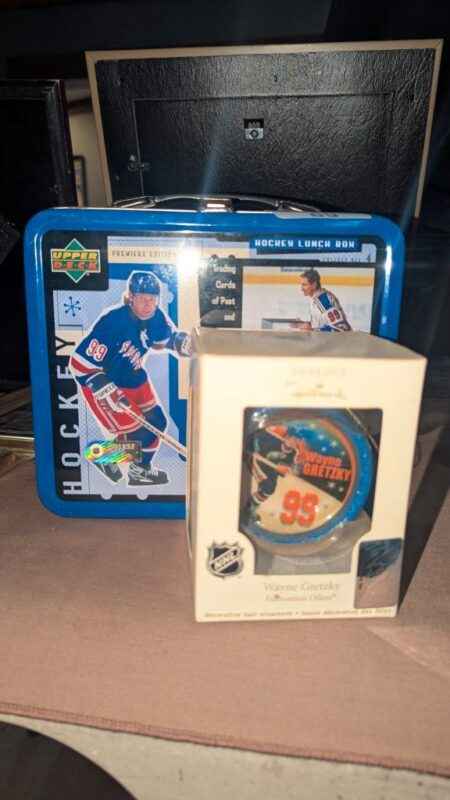 Hockey Collectible lunch kit and Wayne Gretzky hockey puck