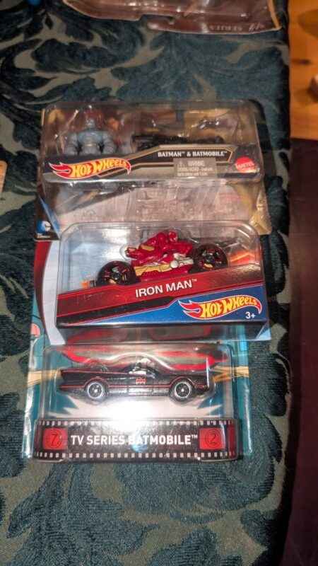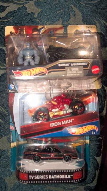 Hot Wheels Batman, Iron Man and Superman die cast cars