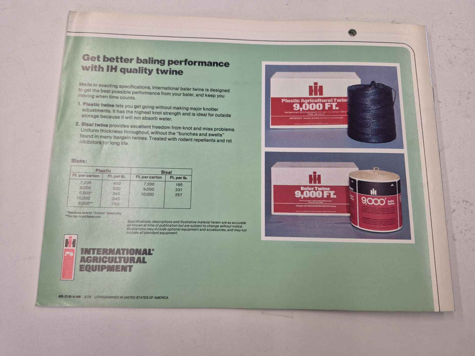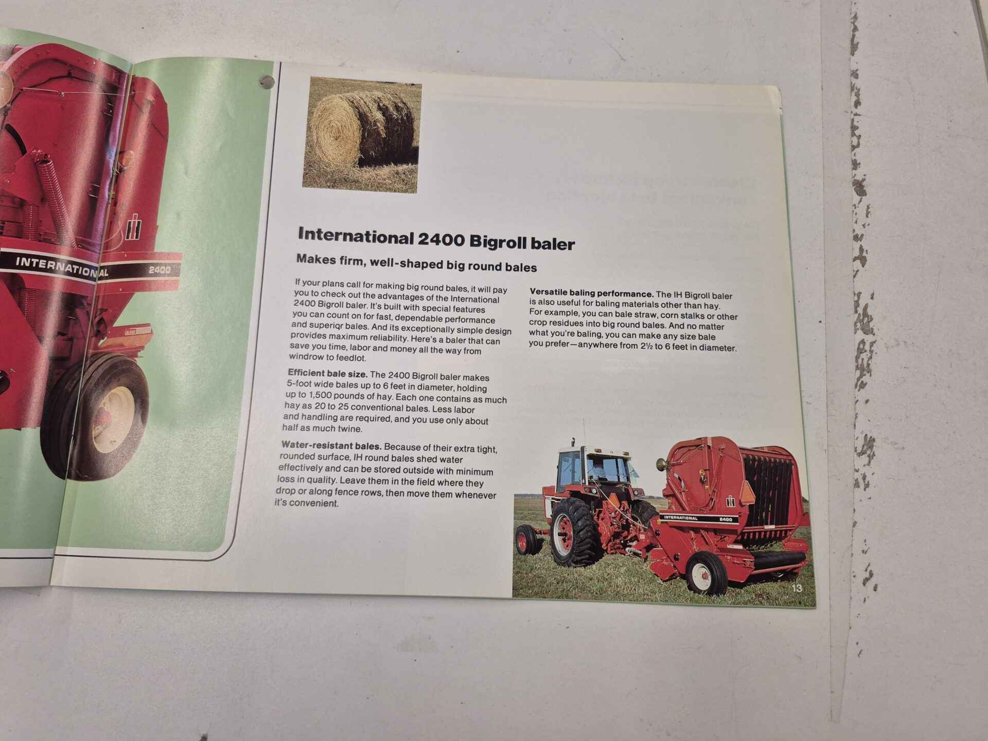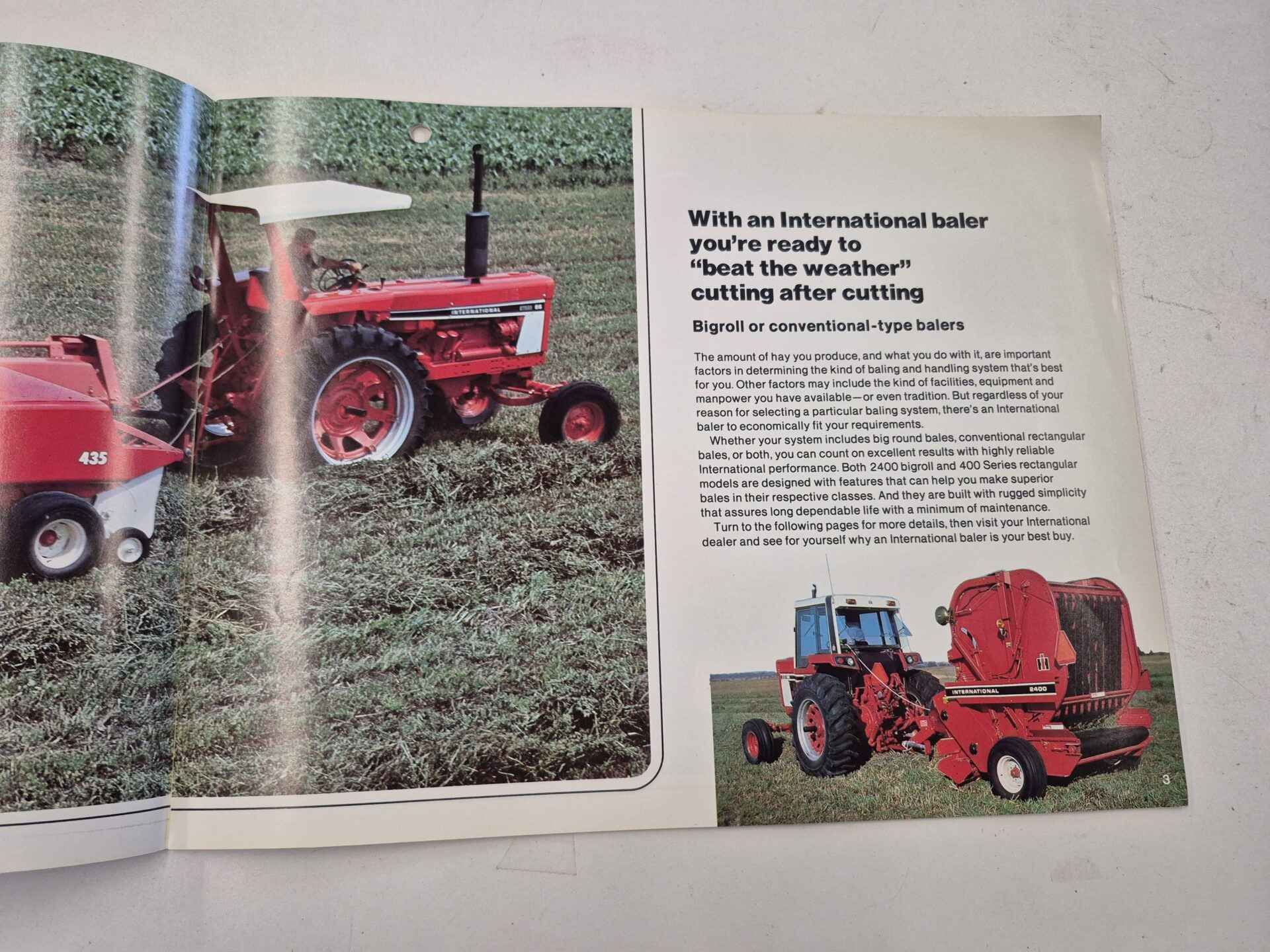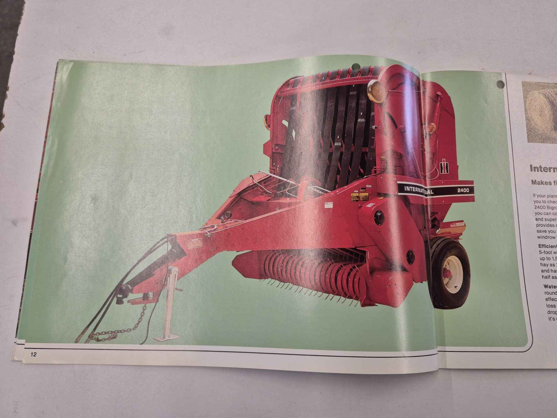 International 400 series 2400. Big roll vintage baler brochure