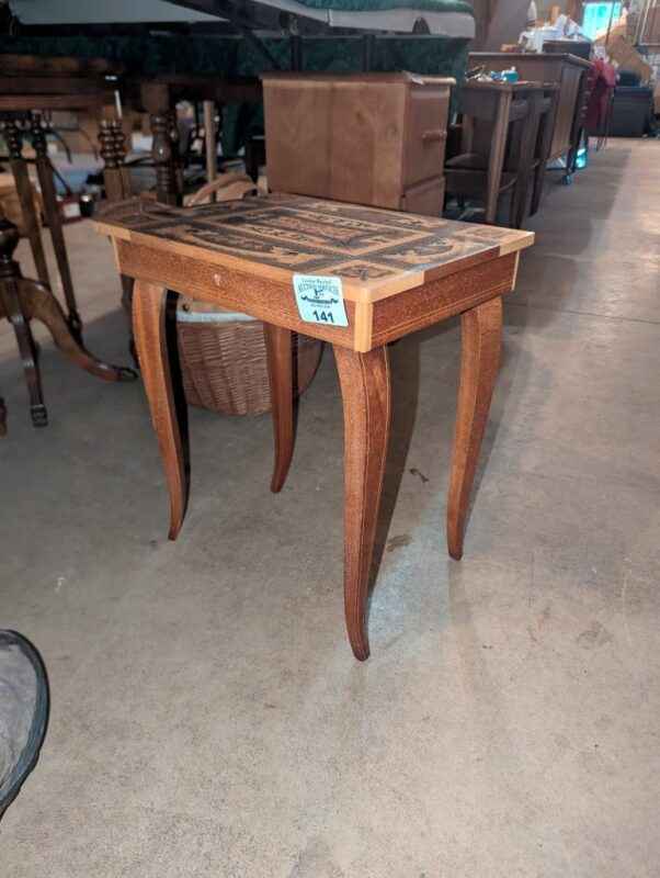 Italian inlaid wood music box stand