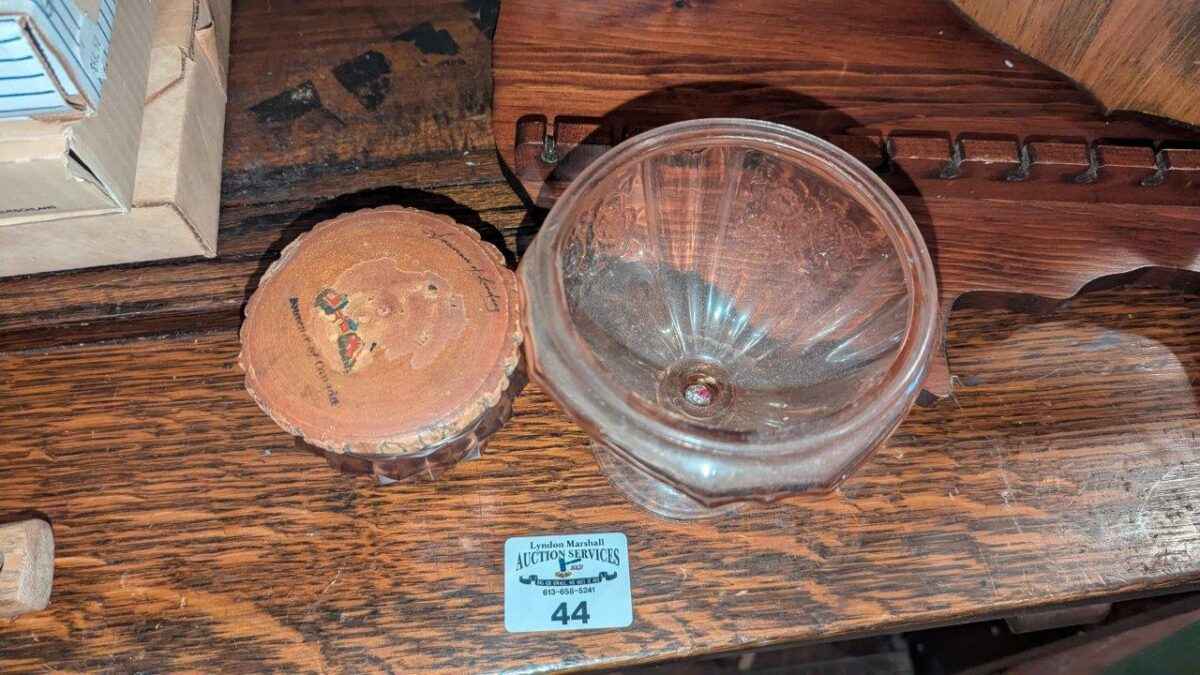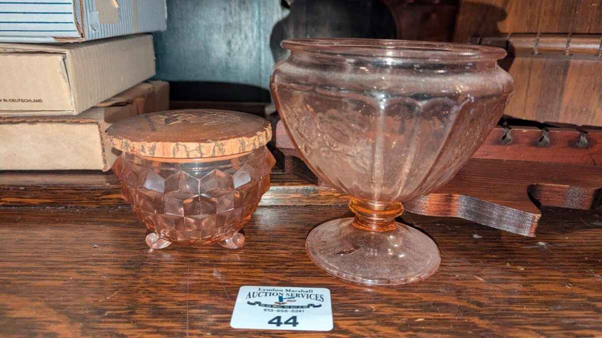 Jeannette glass cubist footed jar and Pink Depression candy jar(no lid)