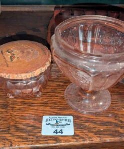 Jeannette glass cubist footed jar and Pink Depression candy jar(no lid)