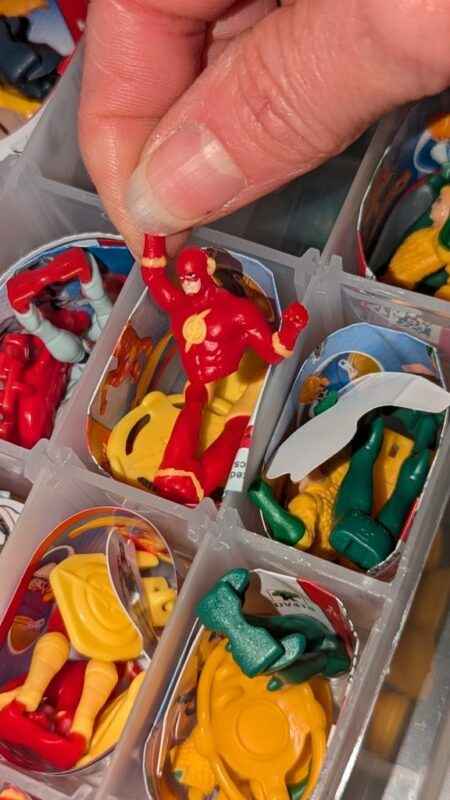 Kinders – assorted, Super heros, in plastic organizers