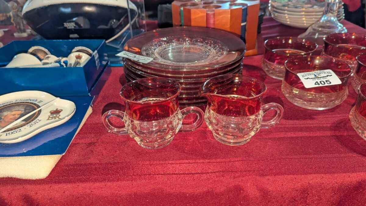 King’s Crown Thumb print cream & sugar and dessert plates
