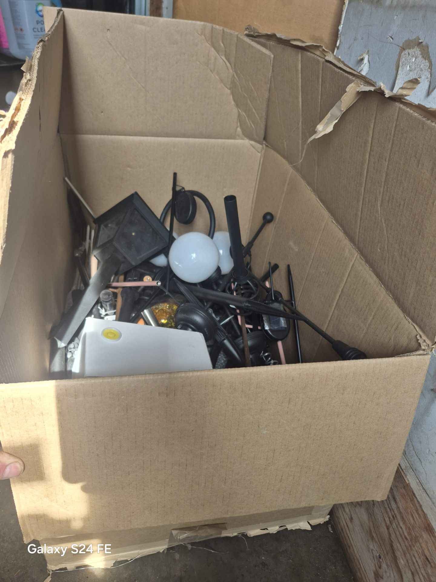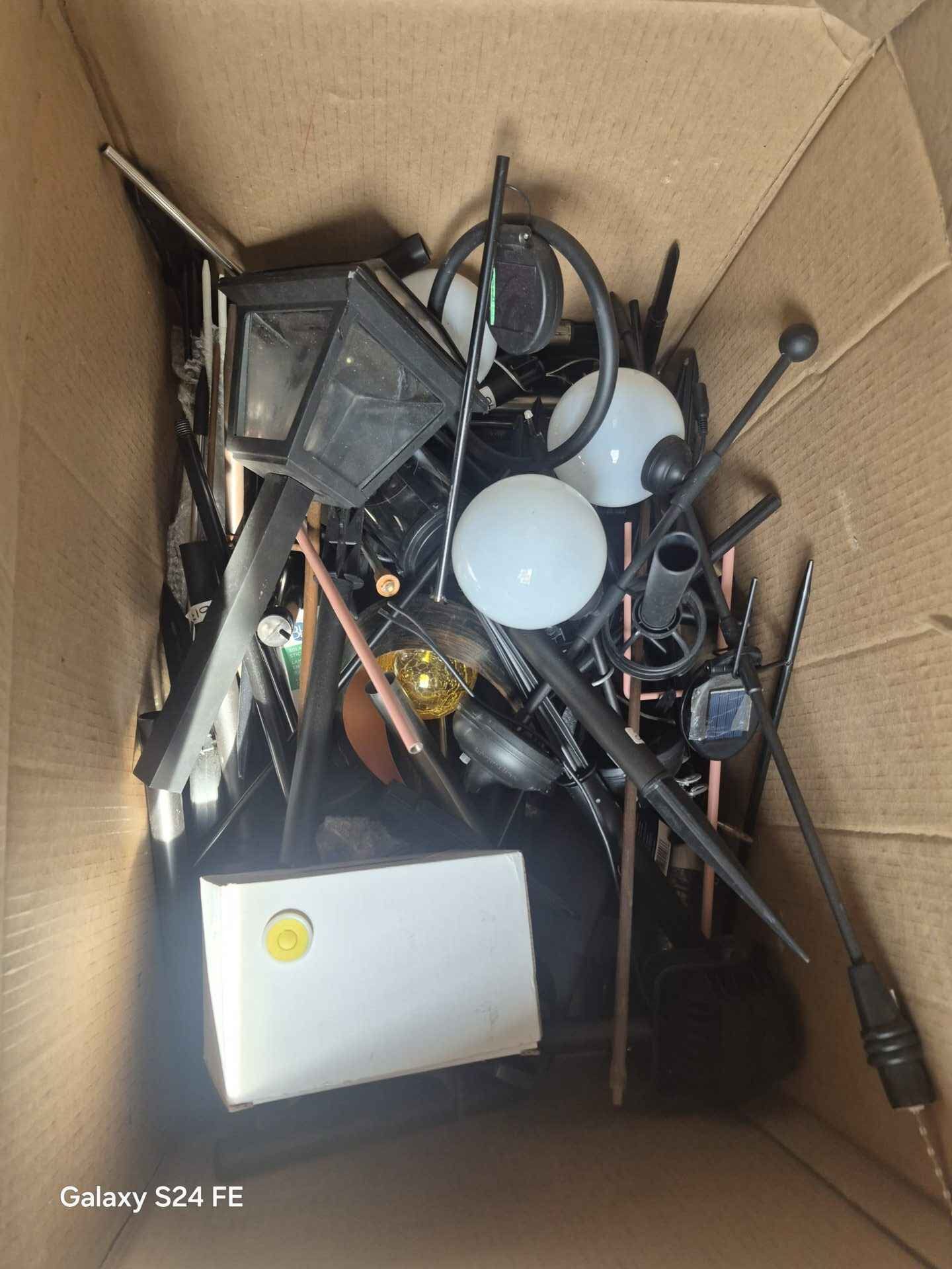 Large box lot solar and direct wire lights and accessories