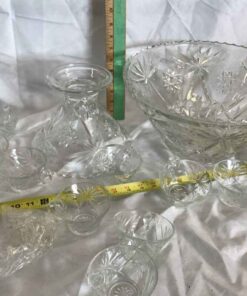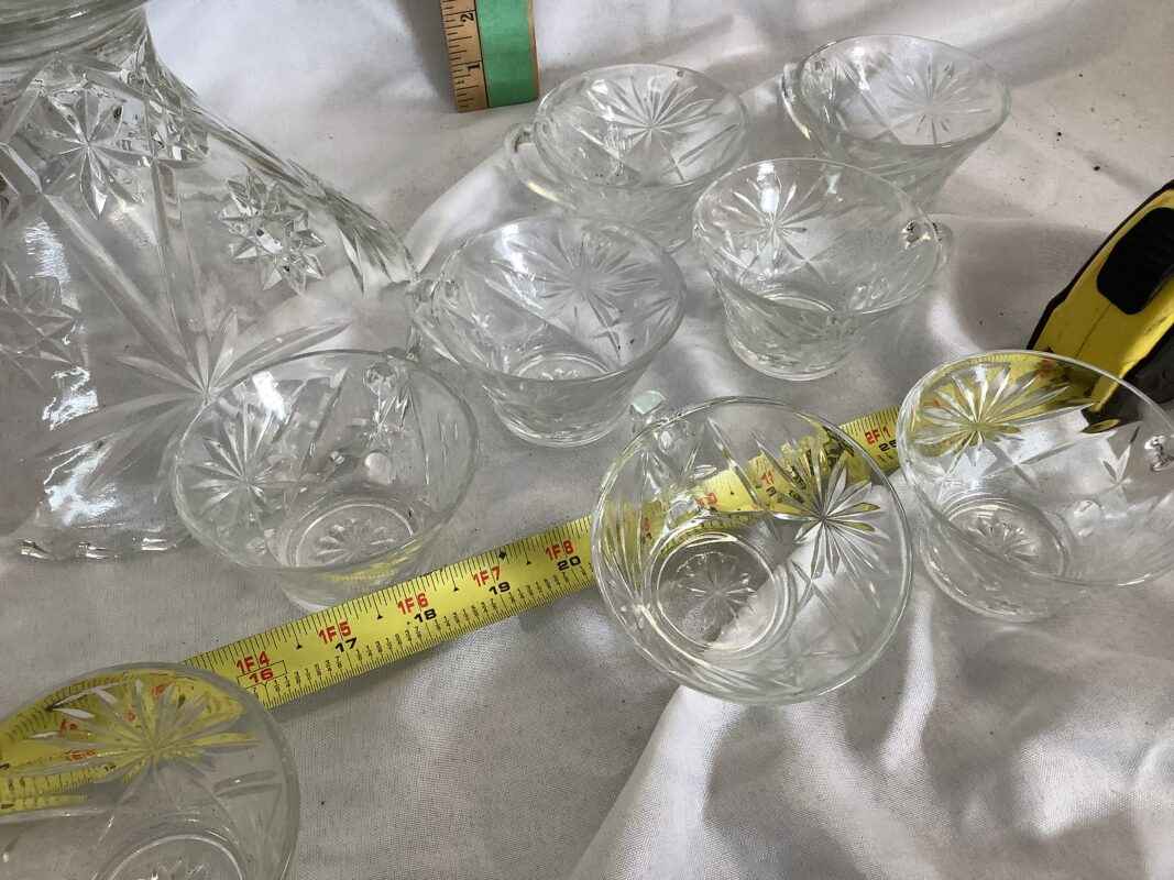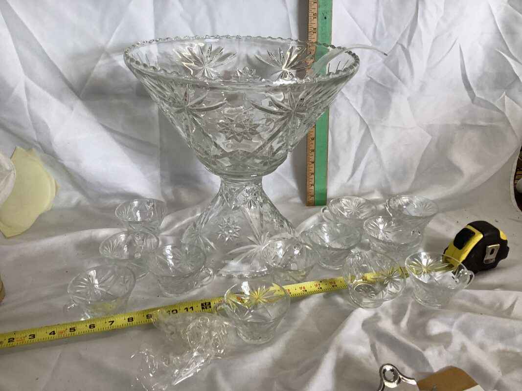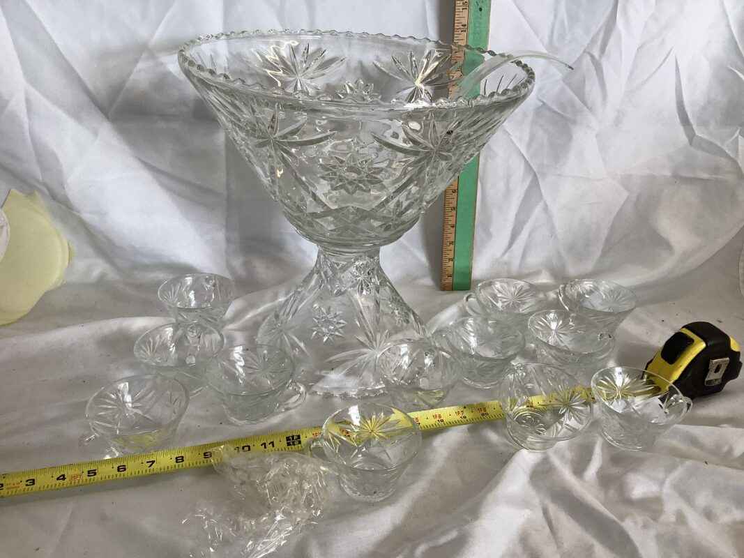 Large Punch Bowl with stand, 12 cups and hooks and ladle