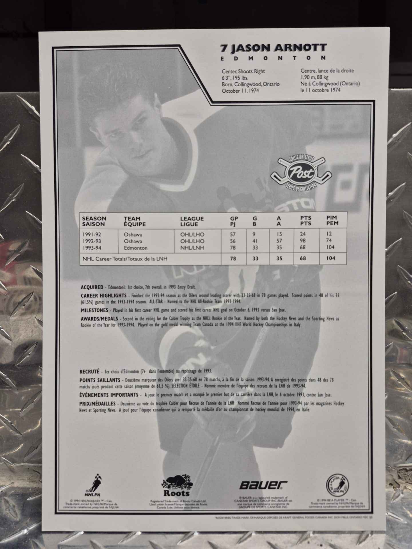 Large size (8.5 x 11 full page) POST COLLECTOR SERIES Jason Arnott