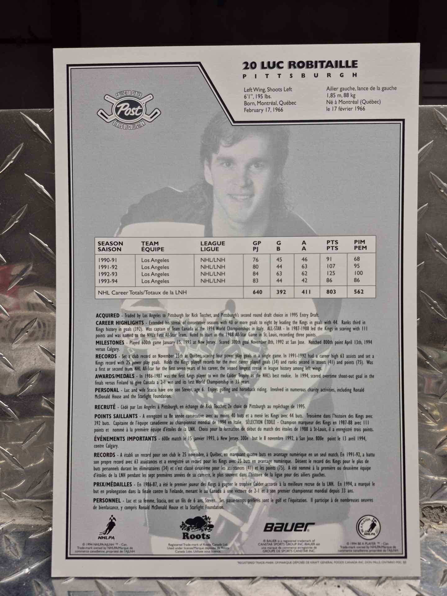 Large size (8.5 x 11 full page) POST COLLECTOR SERIES Luc Robitaille