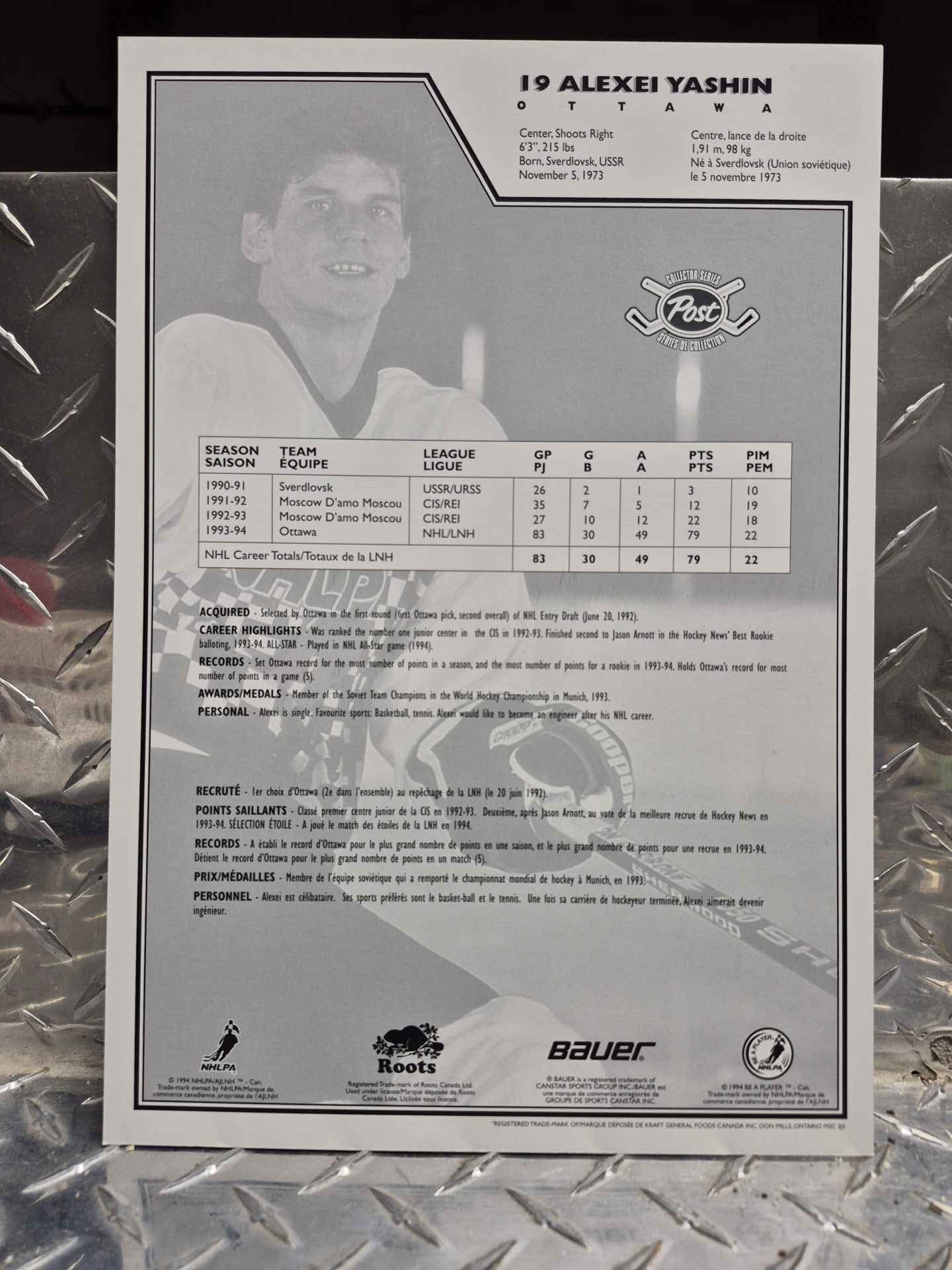 Large size (8.5 x 11 full page) POST COLLECTOR SERIES Alexei Yashin