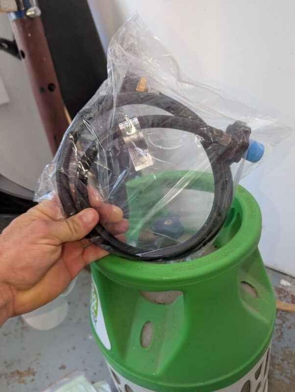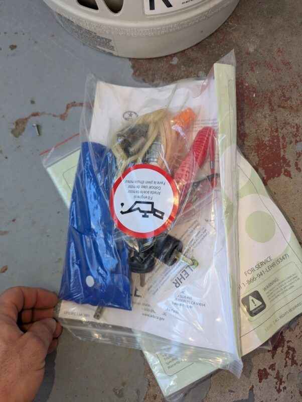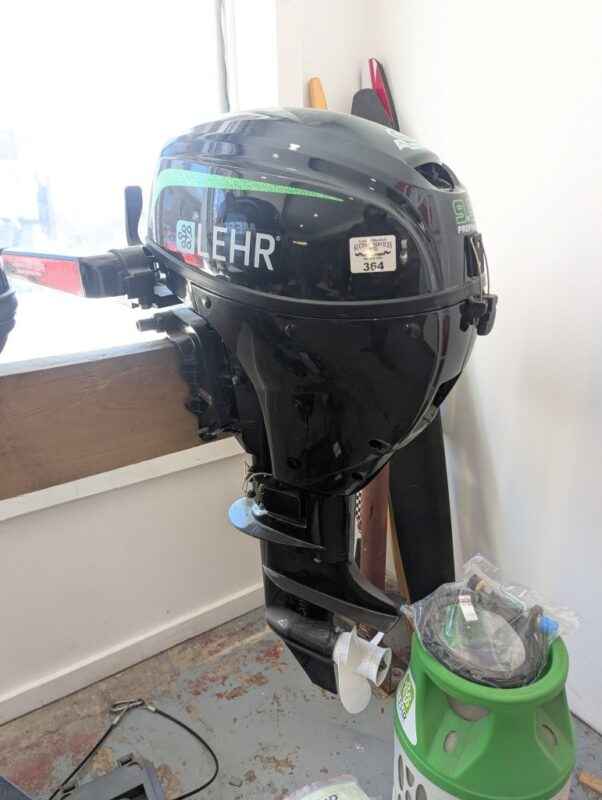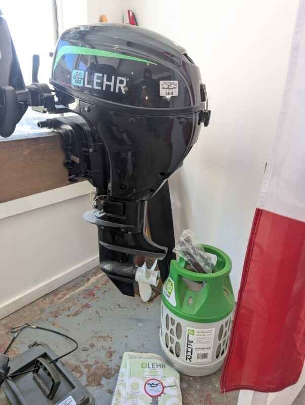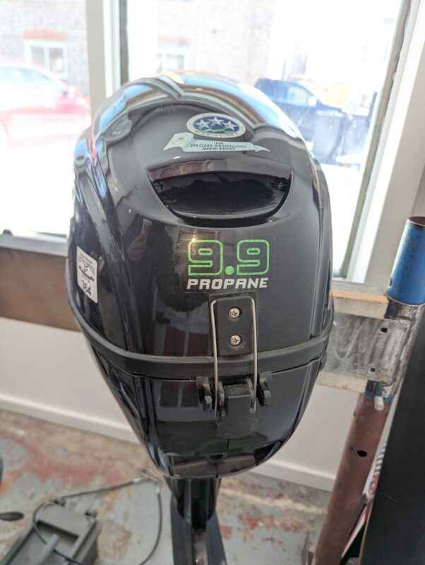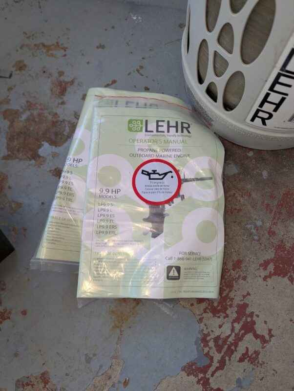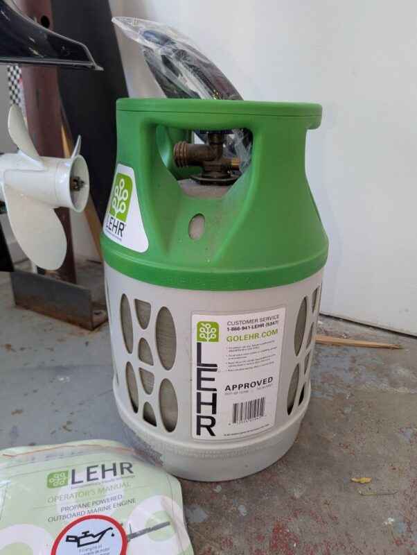 LEHR 9.9 propane powered outboard engine, tank & accessories