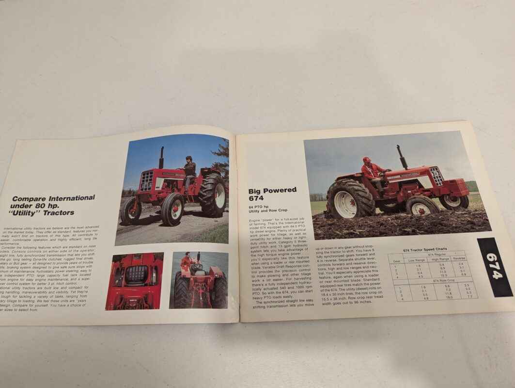 Literature- International utility tractors under 80 horsepower that featuring the 74 series, 844s, the 633. One brochure with all the Doncaster built tractors in it